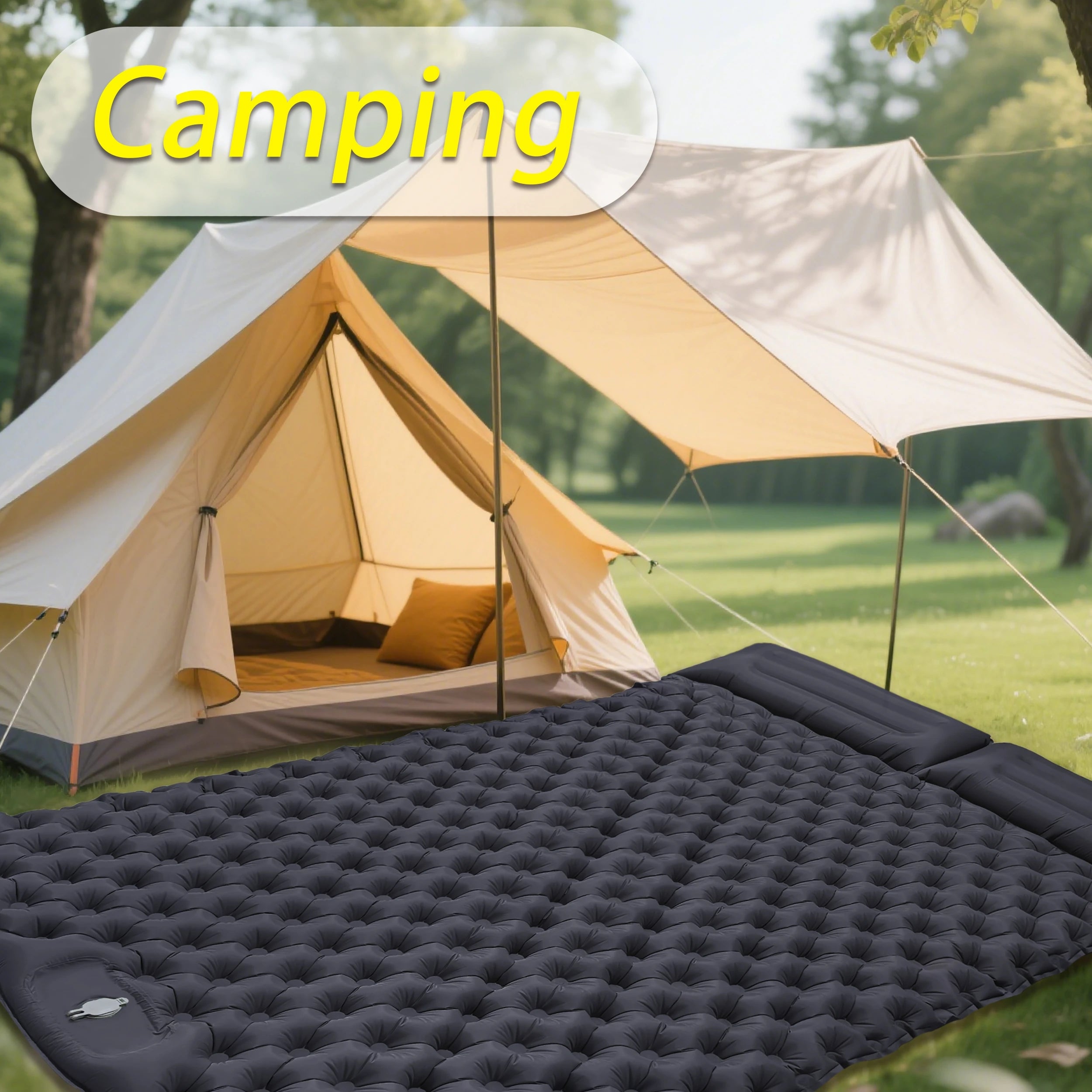 Double Sleeping Pad for Camping Inflatable Mattress with Pillow Outdoor Mat Travel Bed Cushion Built-in Pump 2 Person for Hiking