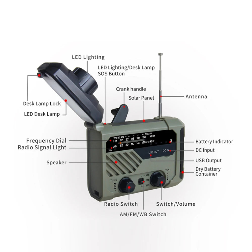 Emergency Solar Radio with Handle, Portable 3-Mode Flashlight SOS Siren Cell Phone Charger Camping Survival Gear and Supplies