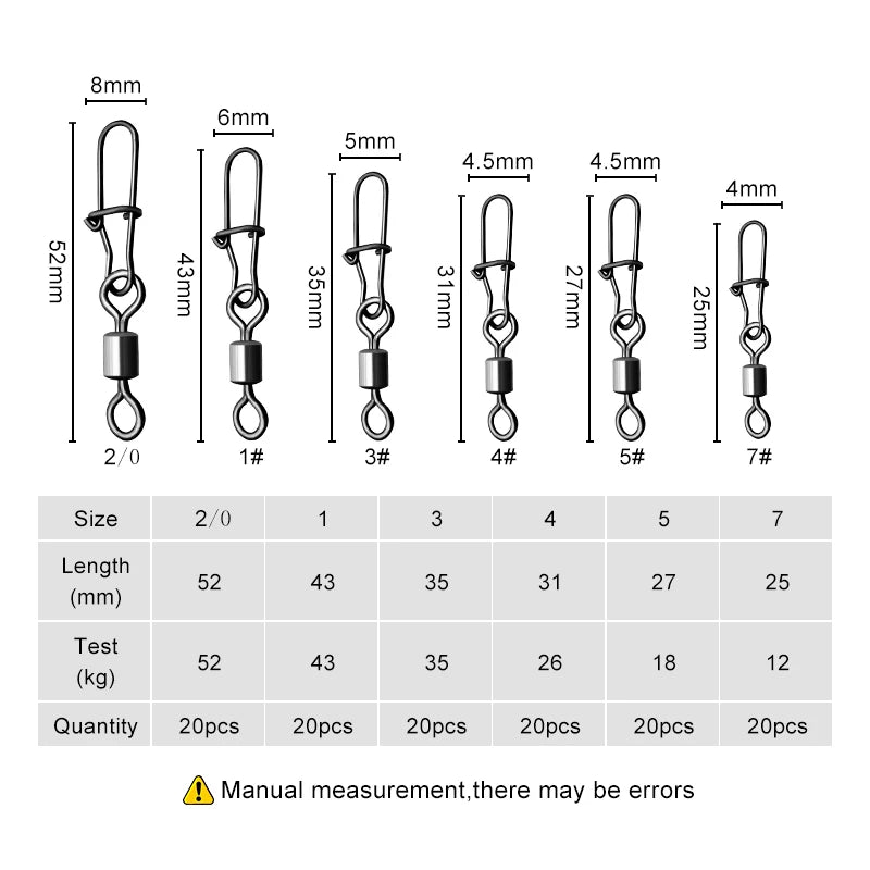 ESFISHING 20pcs Pike Fishhook Lure Fishing Accessories Connector Pin Bearing Rolling Swivel Stainless Steel Snap Swivels Tackle