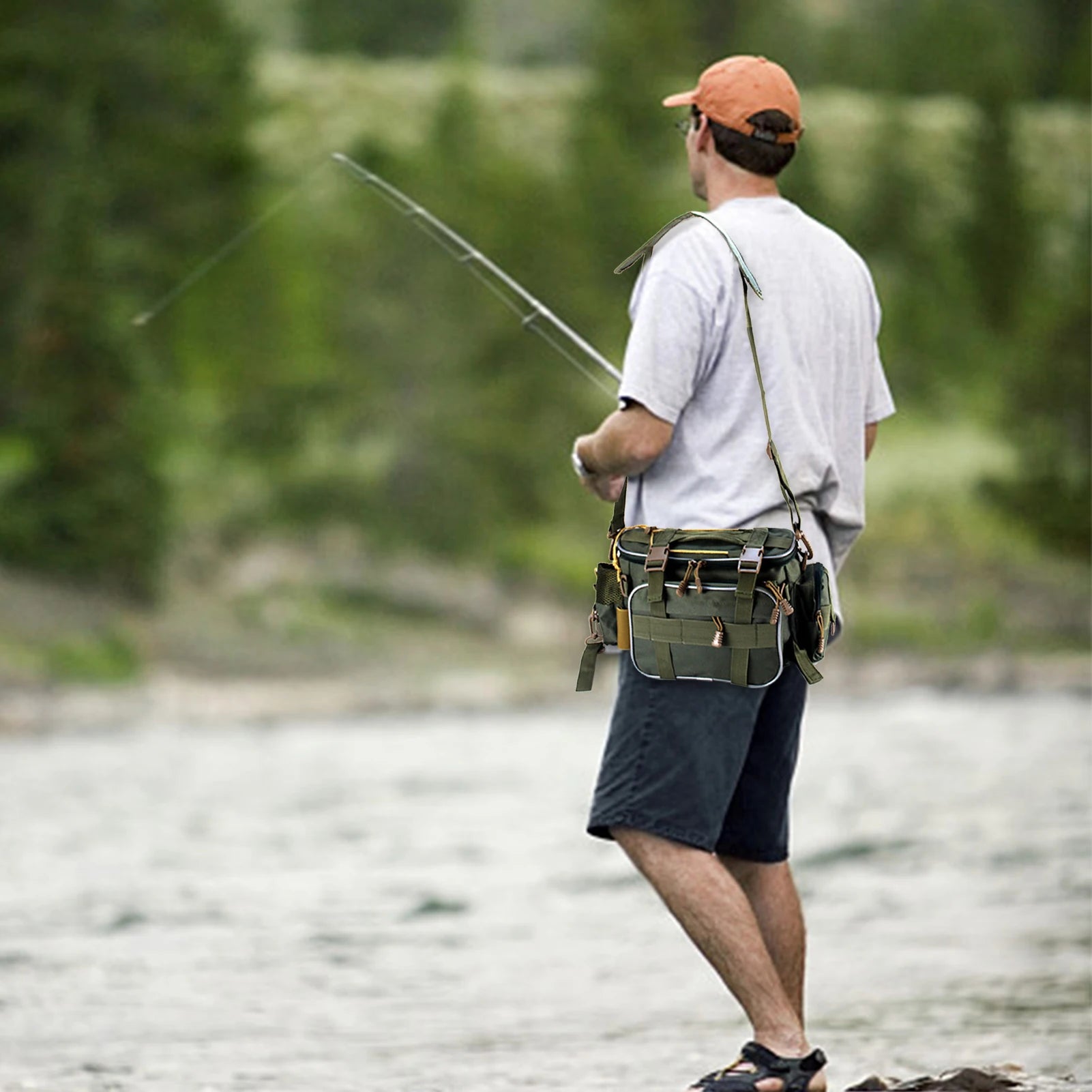 Fishing Tackle Backpack Lure Box Gear Storage Bag Fanny Pack for Men Fly Fishing Backpack with Rod Holder Sling Shoulder Bag