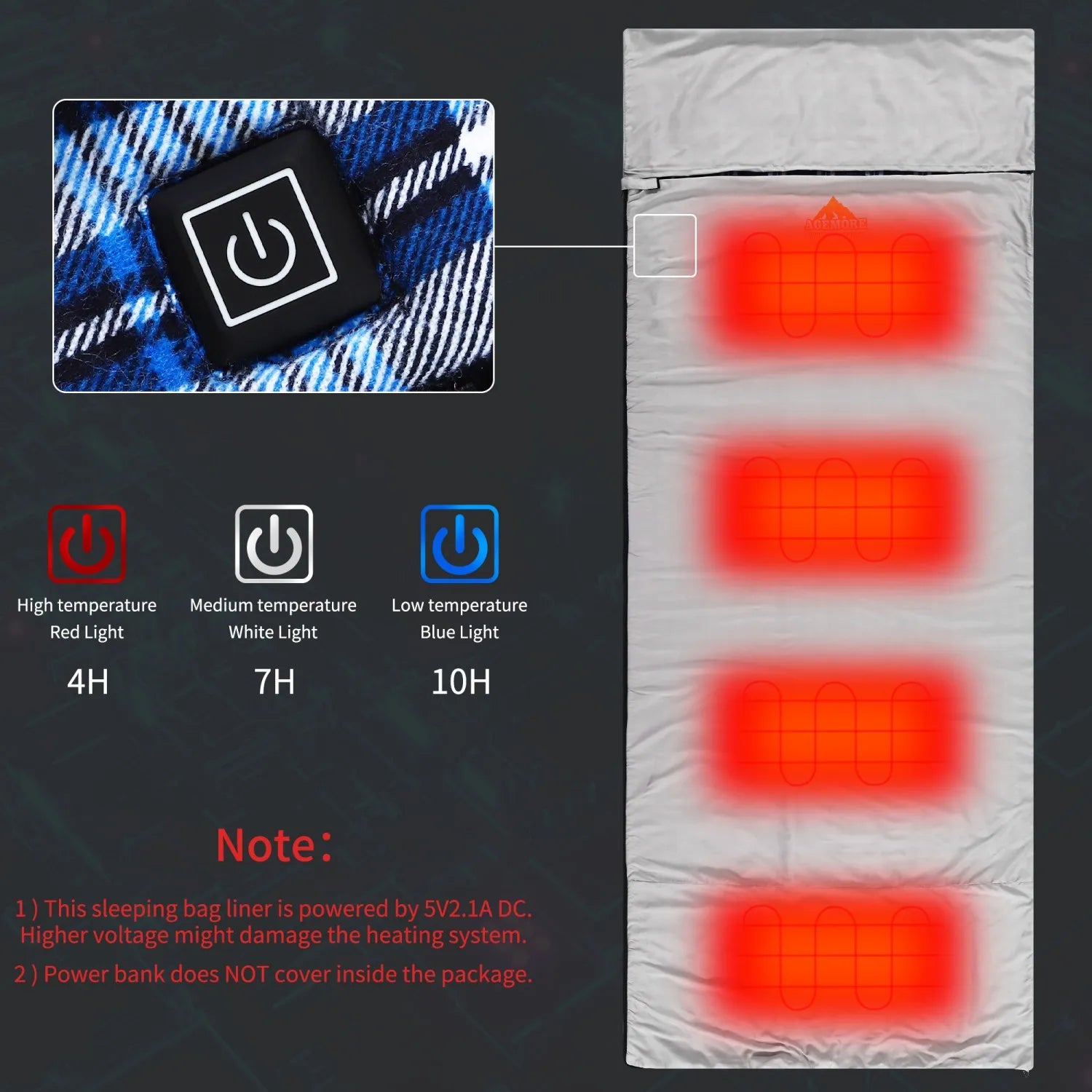 Flannel Heated Sleeping Bag Liner, Warm And Ultra Light, Outdoor Camping Travel Bed Sheet, USB Interface, With Compression Bag