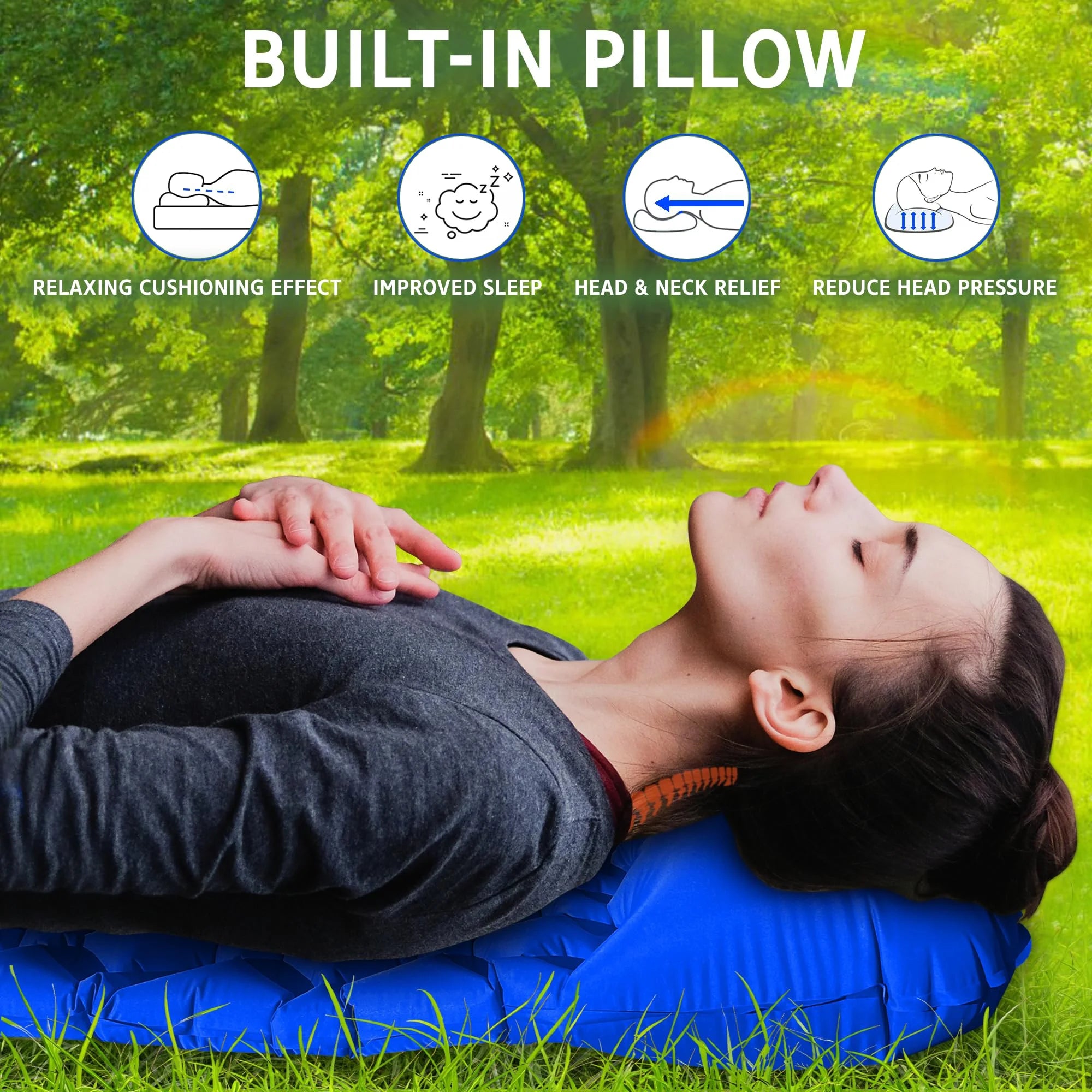 Inflatable Sleeping Camping Mat with Pillow 190L x 64W x 6Th centimetres - Ultralight, Waterproof, Compact Sleeping Pad