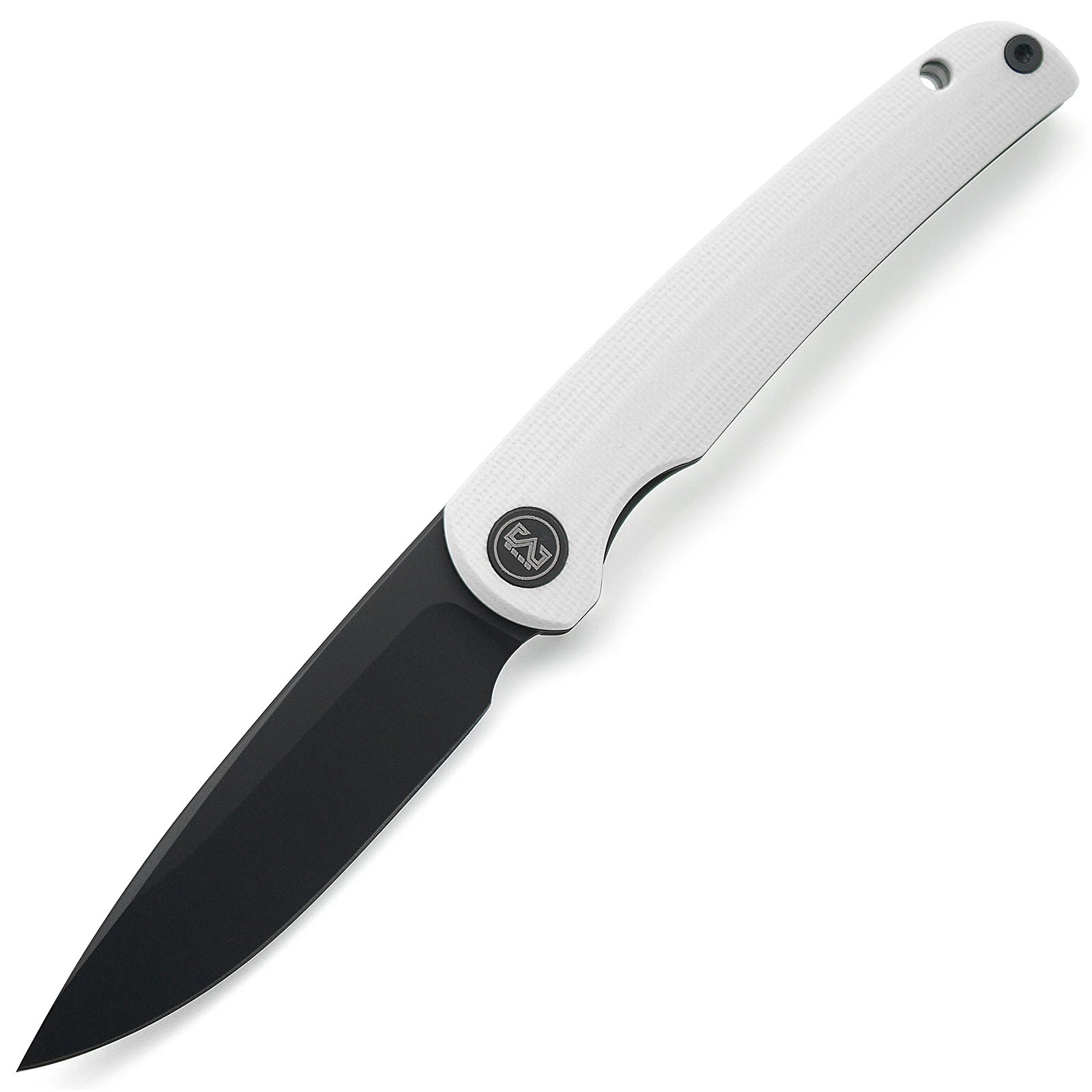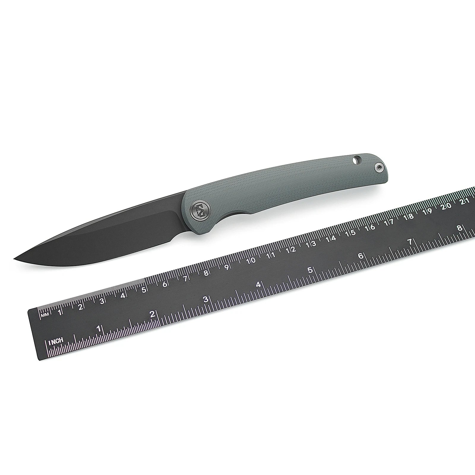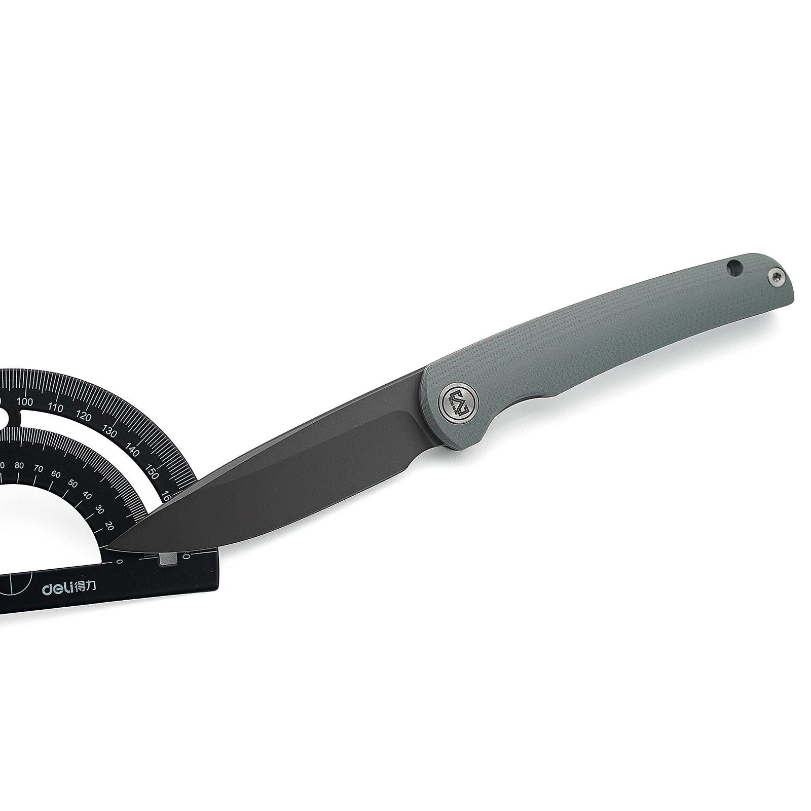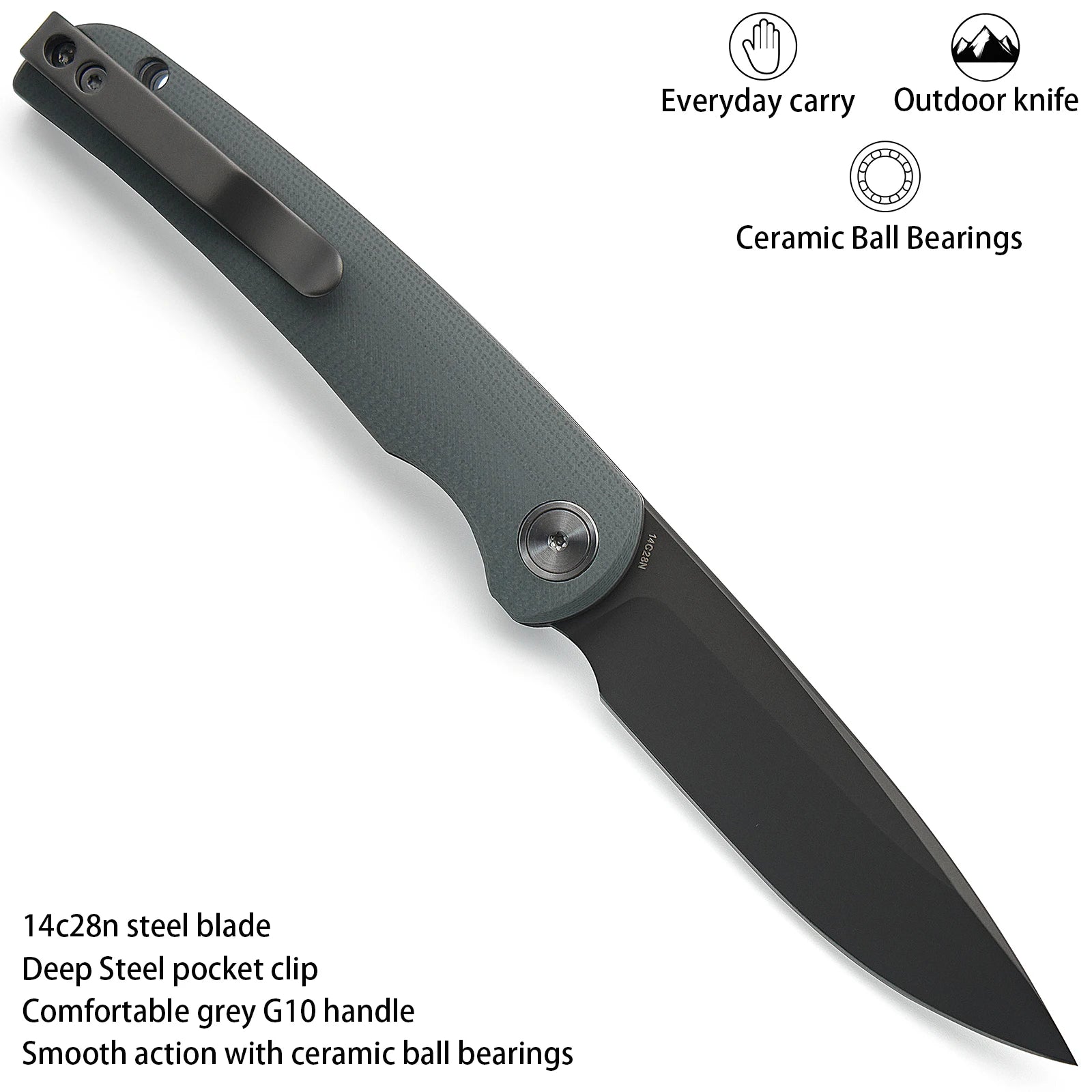 Miguron Knives Akri Front Flipper Folding Knife 3.18" Dark Grey PVD 14C28N Blade Grey G10 Handle Camping Hiking Pocket Knife