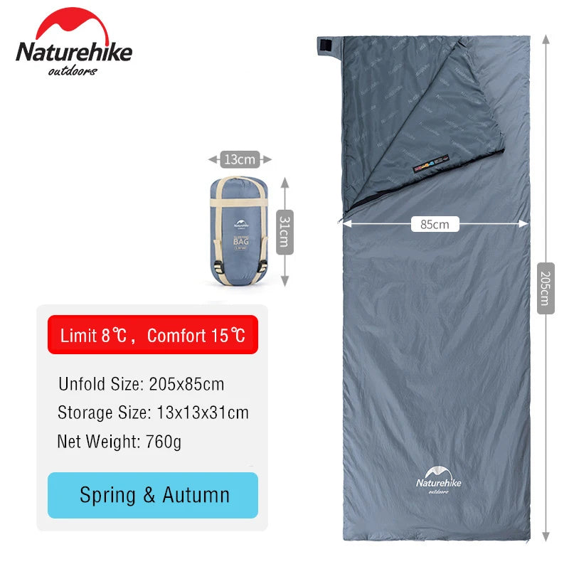 Naturehike Sleeping Bag LW180 Ultralight 3 Season Camping Hiking Sleeping Bags Outdoor Portable Waterproof Cotton Sleeping Bag