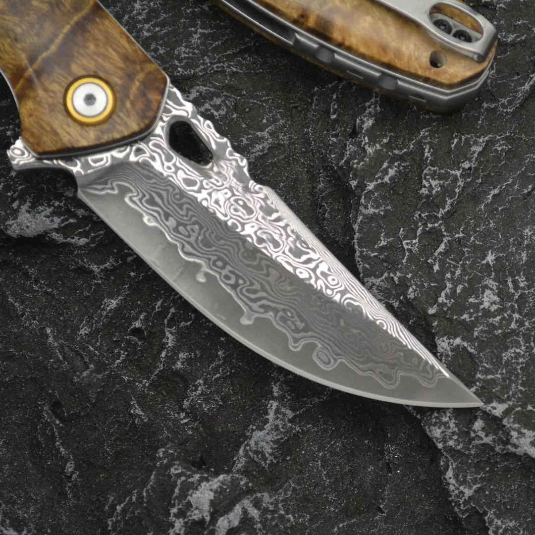 Trskt Cool Damascus Knife ,Neck Tactical Folding Knives,Camping Tool Outdoor Pocket Knife,60Hrc Shadow Wood Handle Dropshipping