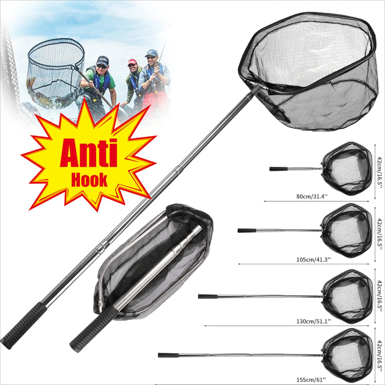 • The telescopic fishing net extends from 42-155CM, allows for the extra reach needed to get to your catch, great for kids and adults.