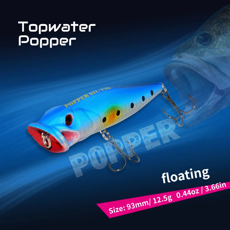 Fishing Lure 12.5g 93mm Floating Popper Artificial Wobbler Hard Bait with Hook for Pike Perch Winter Swimbait Trolling Crankbait