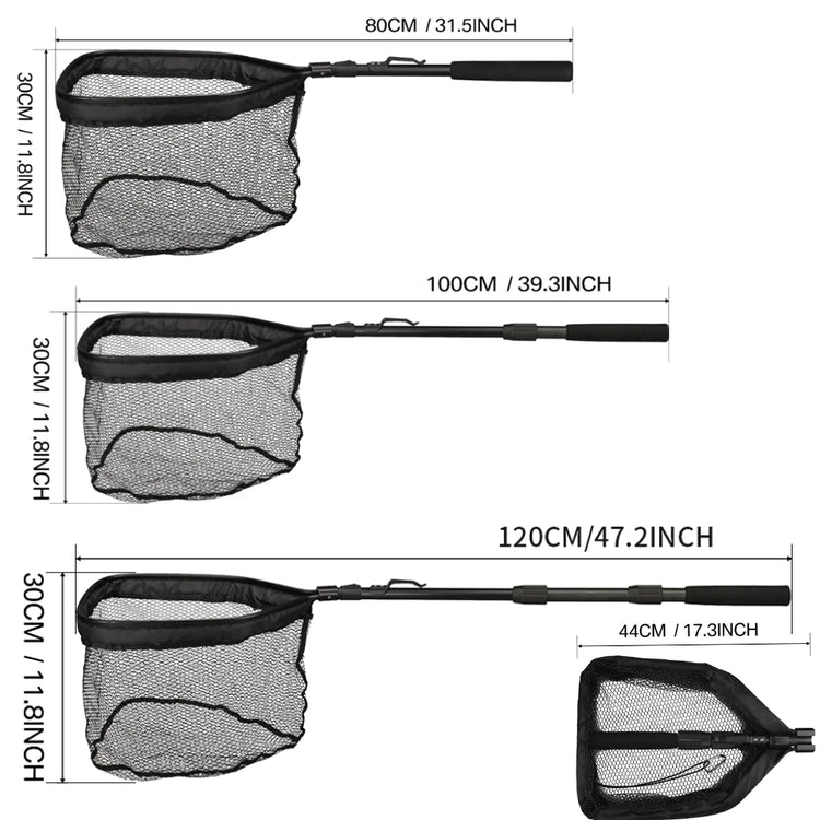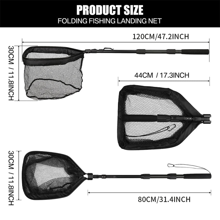 【Dimension of the Net】- 80/100/120CM. The classical shape and size of the fishing net will surely look good in your pictures. Long handle with excellent grip afford plenty of leverage to land the next fish.