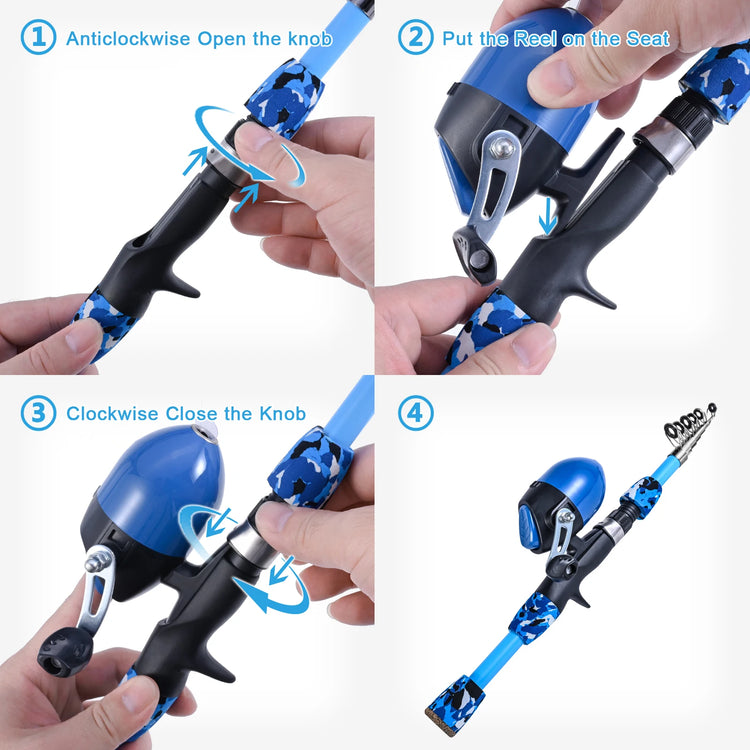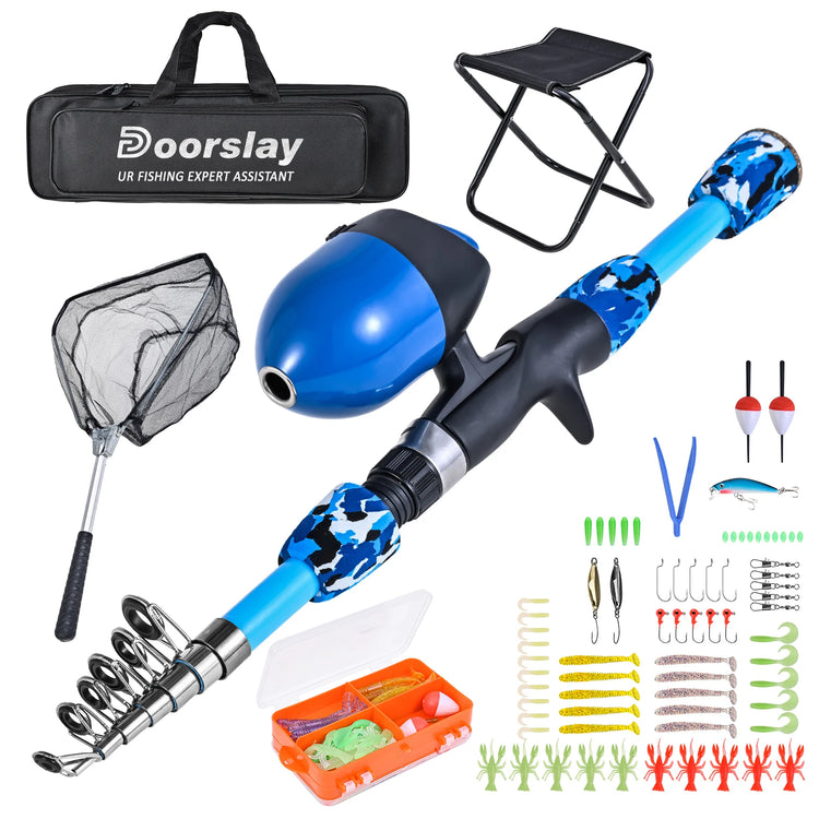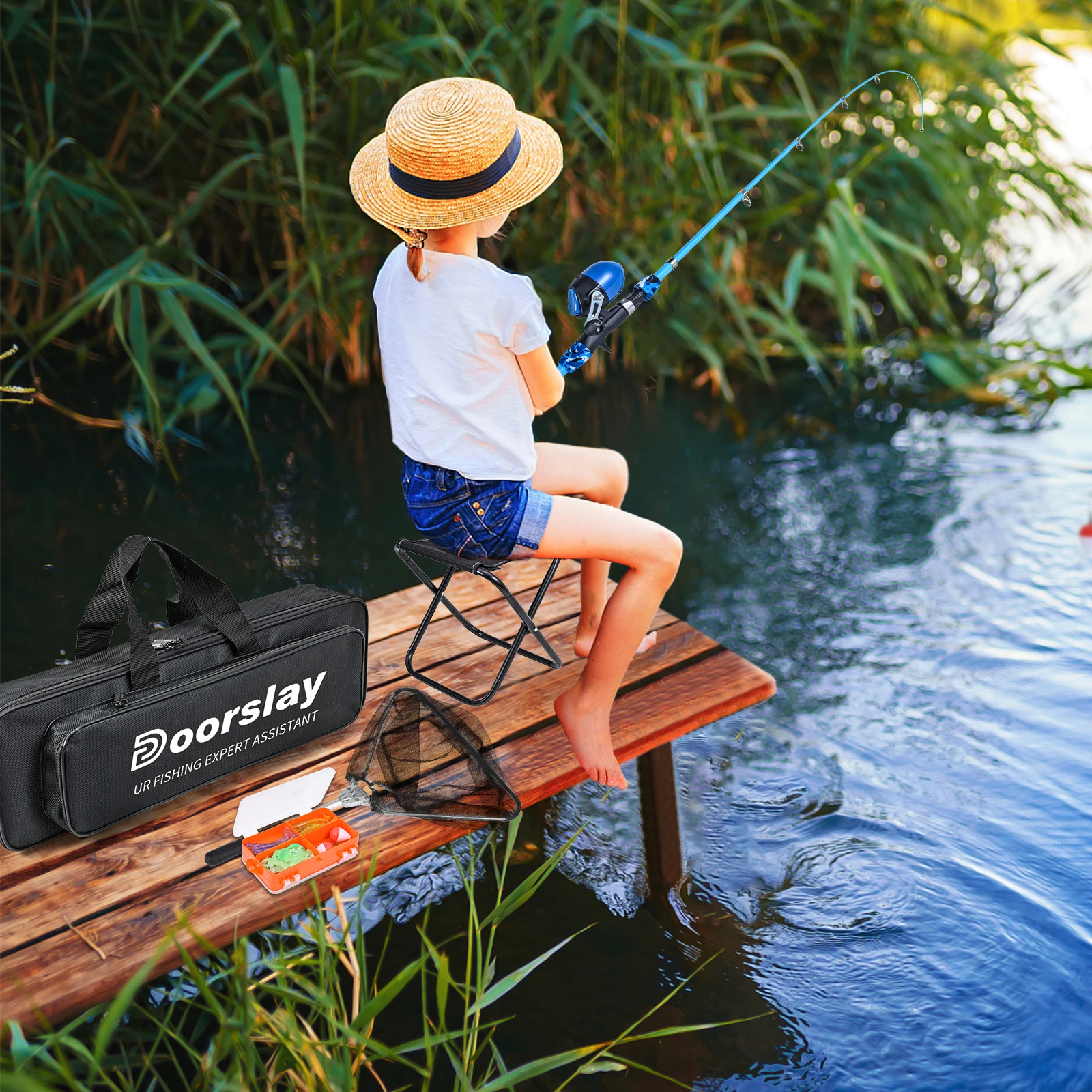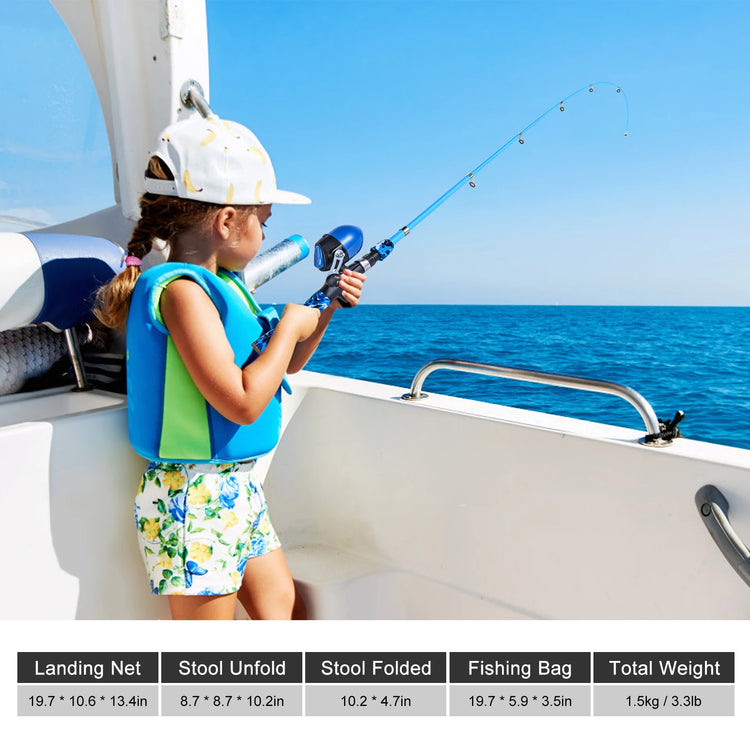 Kids Fishing Rod and Reel Combo with Collapsible Fishing Stool Landing Net Telescopic Fishing Pole Tackle Box Accessories
