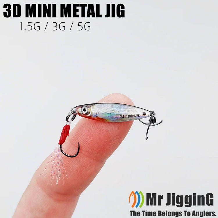 Mr JigginG 5pcs 1.5/3/5g 3D Mini Lure Metal Cast Jig Spoon Jigging Pesca Fish Micro Fishing Lure Artificial Bait Accessories
