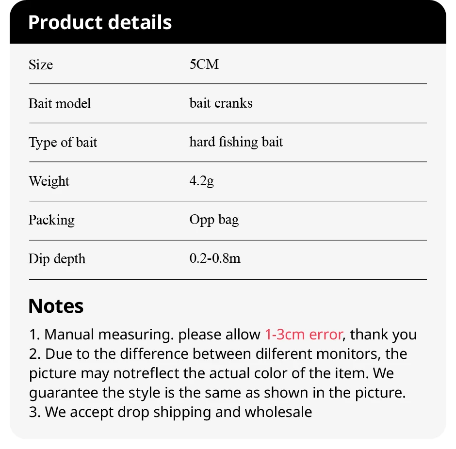 Simulated Bait Fishing Hook 5cm 4.2g 3D Simulated Fish Eye Sea Fishing River Fishing Fake Fish Freshwater Fishing Gear