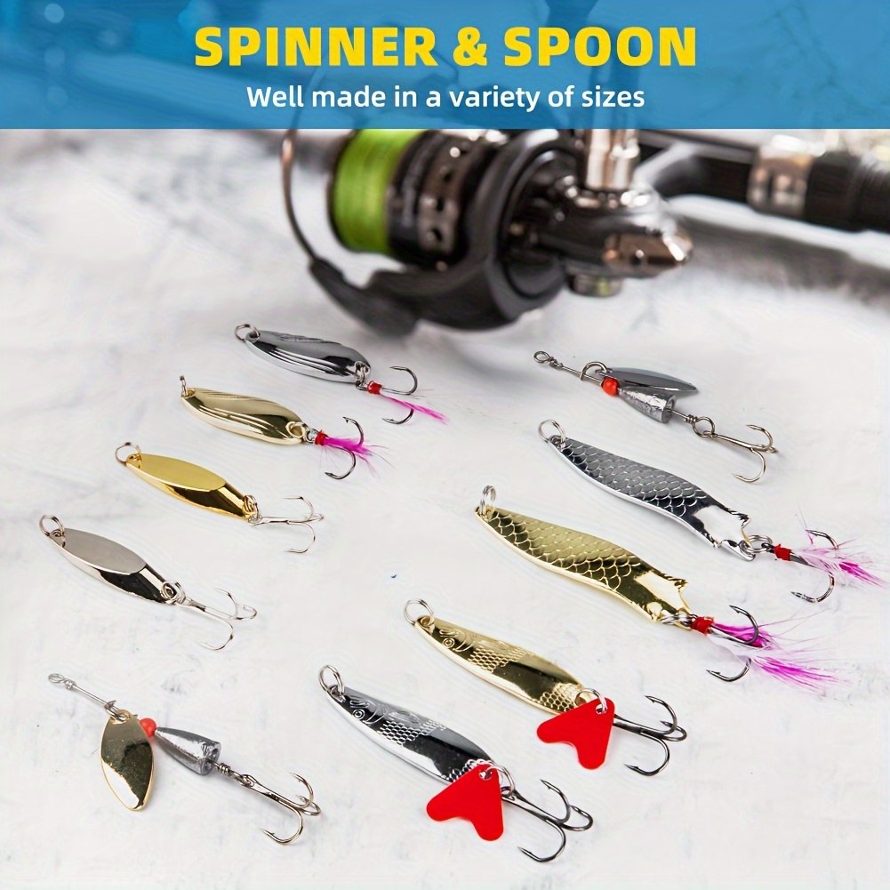 1. Our fishing lure set is the ultimate collection for any angler, featuring a variety of spoon lures, soft plastic worms, crankbait jigs, and more. Perfect for catching bass, trout, and salmon with ease.