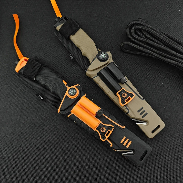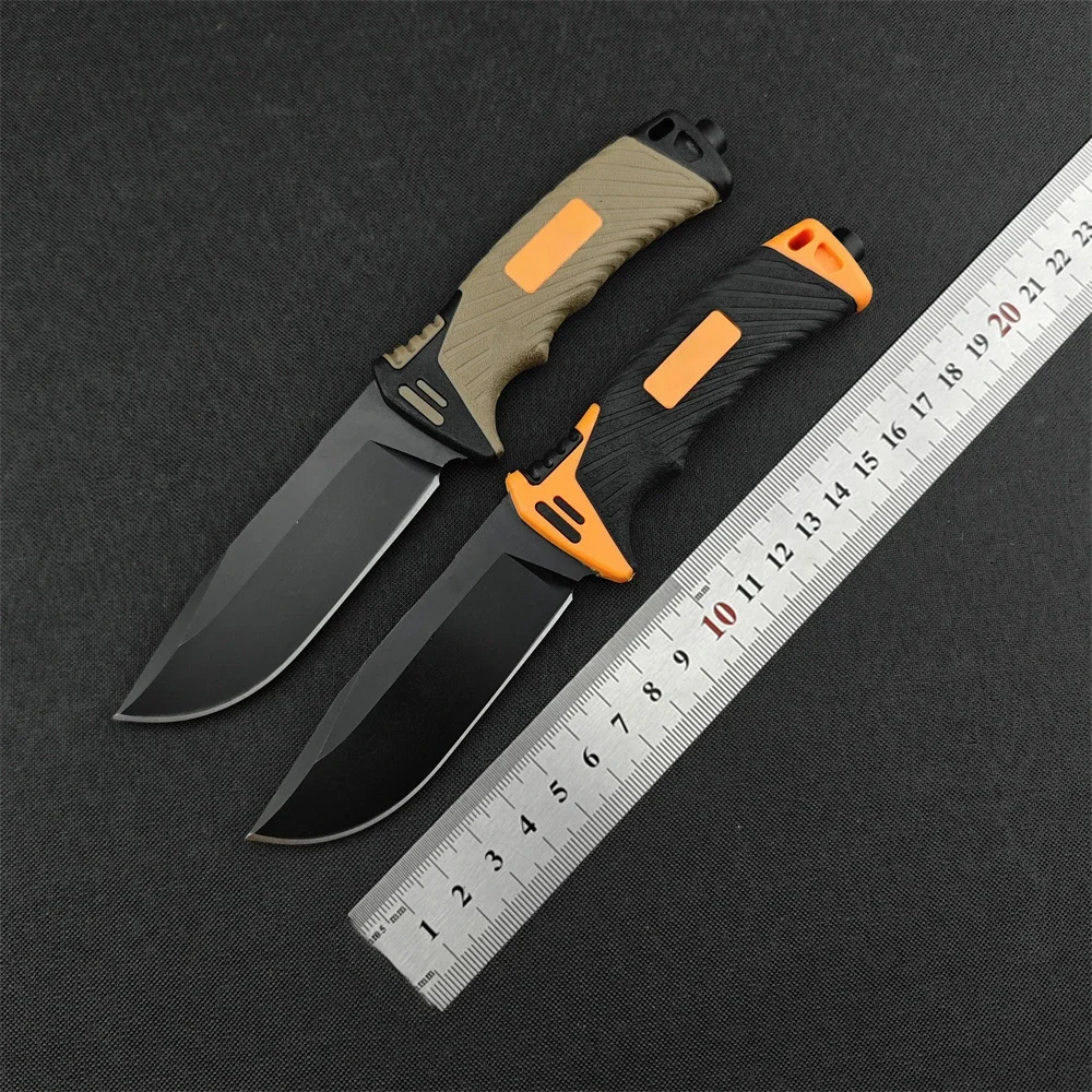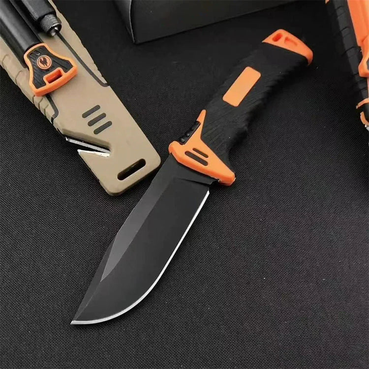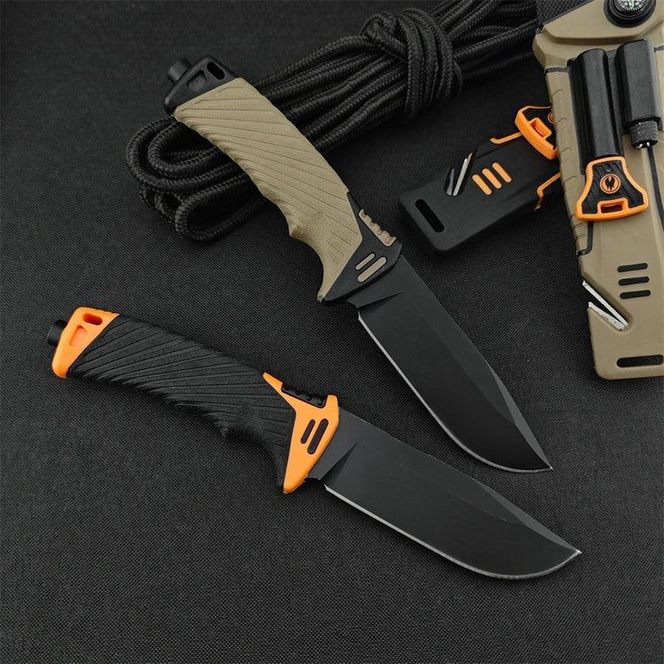 GB Survival Fixed Blade Knives with Flashlight 8Cr13Mov Blade Rubber Plastic Handle Adventure Hunting Combat Gear for Men