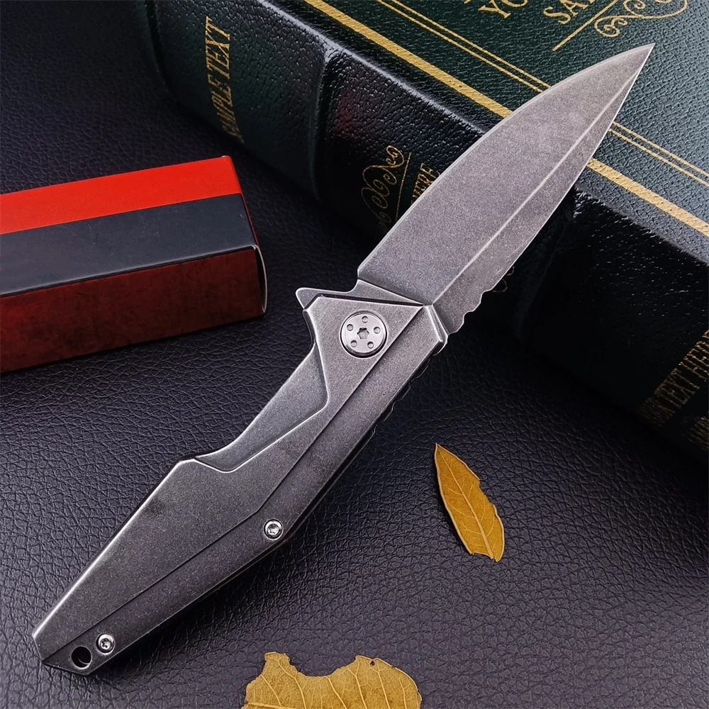 Hunting KS 1318 Folding Knife Outdoor Stonewashed 8Cr13Mov Blade 420 Steel Handle EDC Hiking Camping Knives Survival Pocket Tool