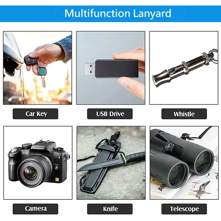 Outdoor Paracord Rope Keychain EDC Survival Kit Cord Camera Telescope Phone Lanyard Military Emergency Strap for Hiking Camping