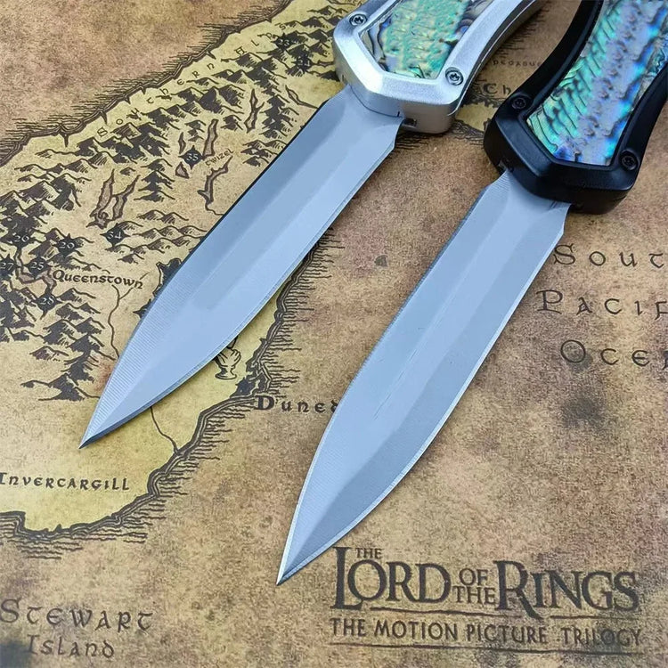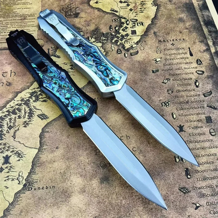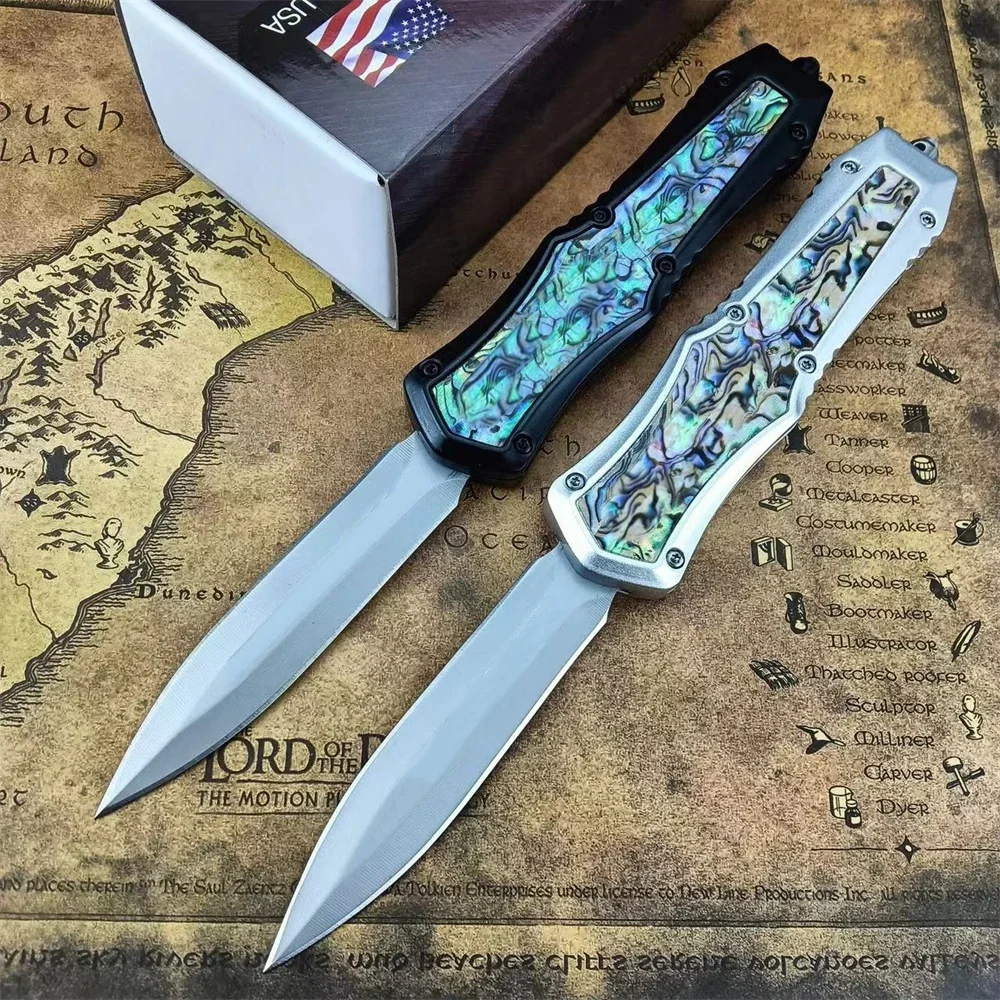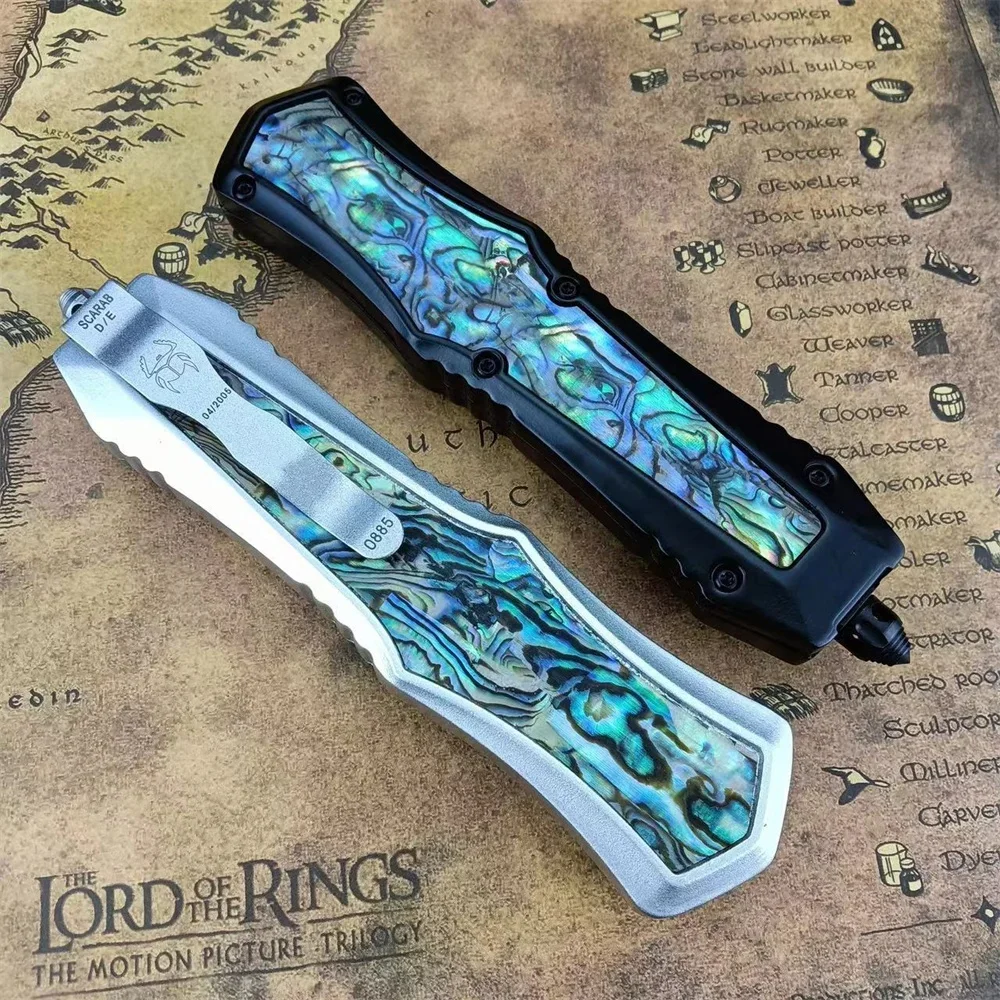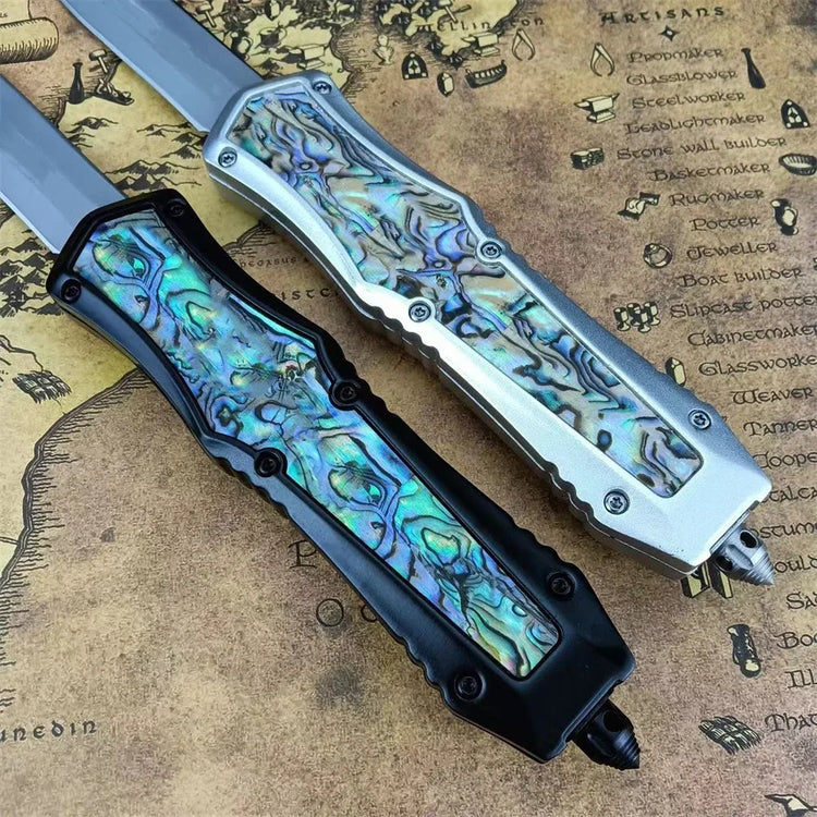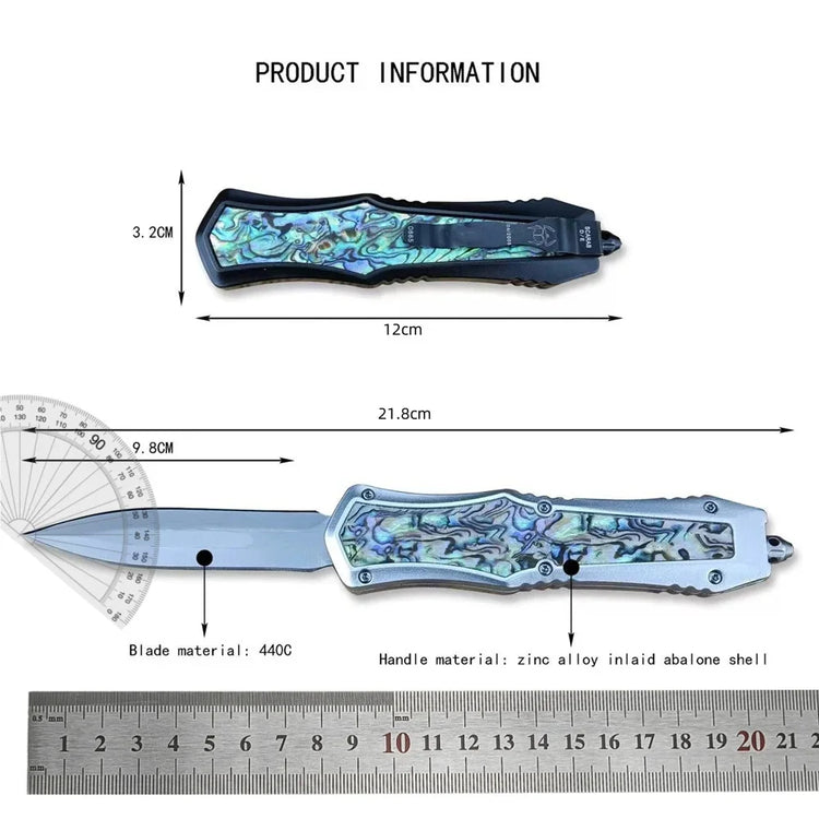 Portable Assisted Tactical Pocket Knife 440C Steel Blade Zinc Alloy Inlaid Abalone Handle Outdoor Hunting Rescue Survival Tool