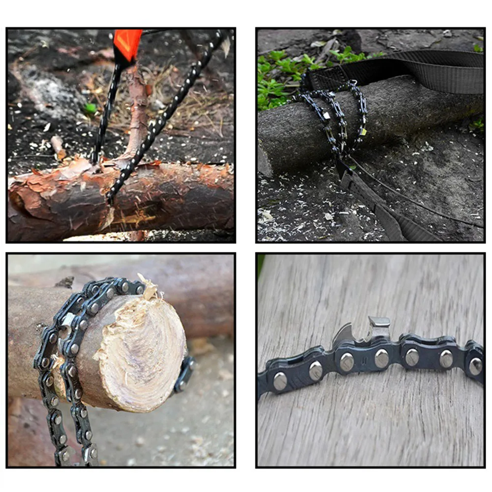 【SHARP & FAST】This portable chain saw is about 26 inches long, enough to do a flexible bidirectional motion to cut or prune wood. The chain saw can cut through the wood in seconds, with 11 bidirectional sharp cutting saw blades. Industrial grade quality to promise your cutting efficiency and require.
