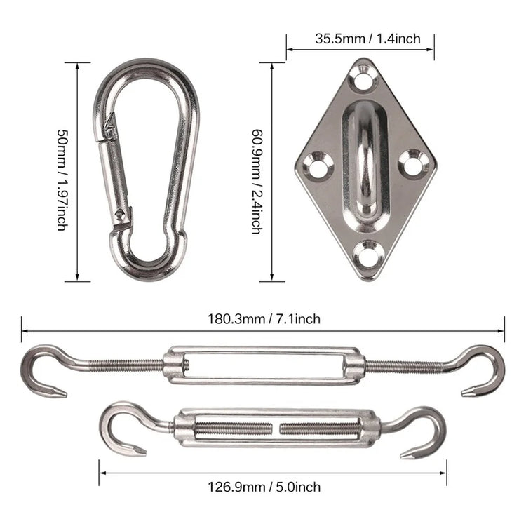 Sun Shade Sail Canopy Accessory 24pcs/set 304 Stainless Steel Hardware Kit Turnbuckle Pad Eye Carabiner Clip Hook Screws Silver