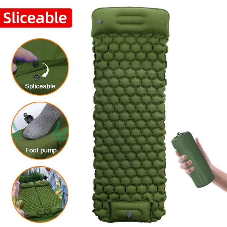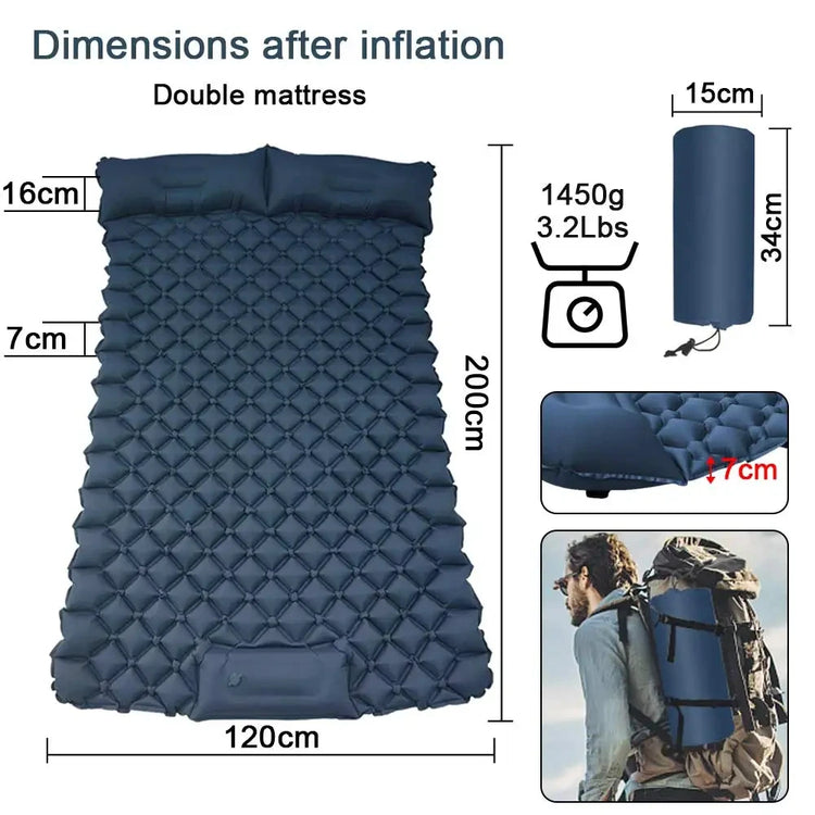 1/2 Person Inflatable Mattress Outdoor Camping Mat with Air Pillow Portable Air Mattress Waterproof Backpacking Sleeping Pad