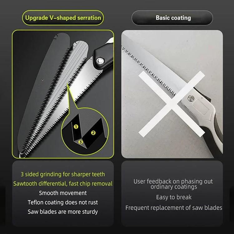 - SAFETY LOCK DESIGN - The multi-function saw design of folding saw provides a high-quality tool, excellent folding function and fast and safe locking and unlocking system, which can firmly fix the saw blade in the proper position during use. The locking blade ensures safety without collapsing or breaking when cutting or closing.