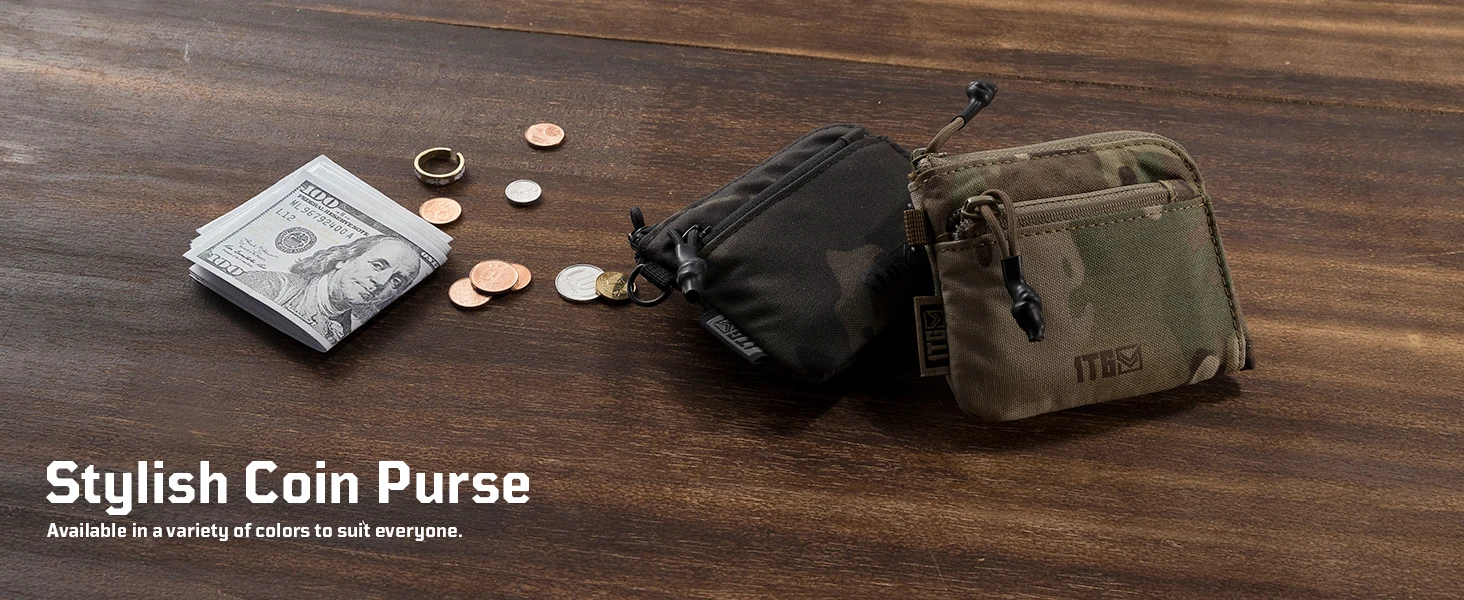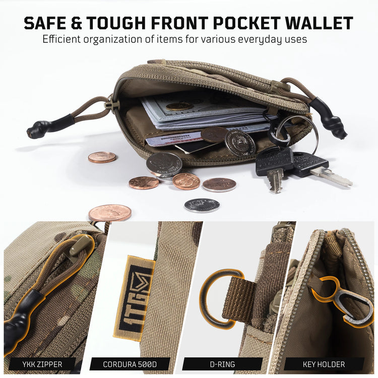 1TG TACTICAL Coin Purse, 500D Minimalist Wallet Change Purse ID Card Holder Money Pouch Tactical Bag with YKK Zipper-Camo