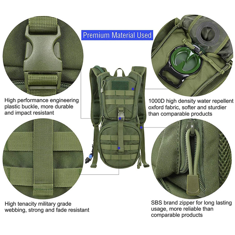 *Versatility: Frees your hands while drinking, this tactical hydration pack is your perfect choice for short trip, camping, bike riding, walking, mountaineering, kayaking, skiing, snowboarding.