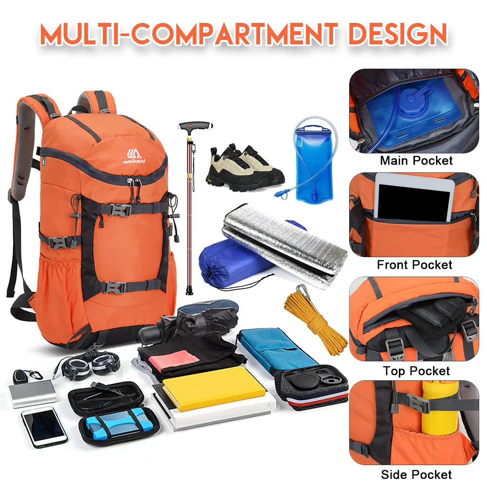 Our camping backpack has breathable shoulder pads and back cushion help to reduce fatigue.