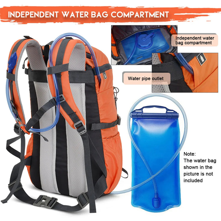 The backpack has an independent water bag compartment (water bag is not included) so you can replenish water while going out.