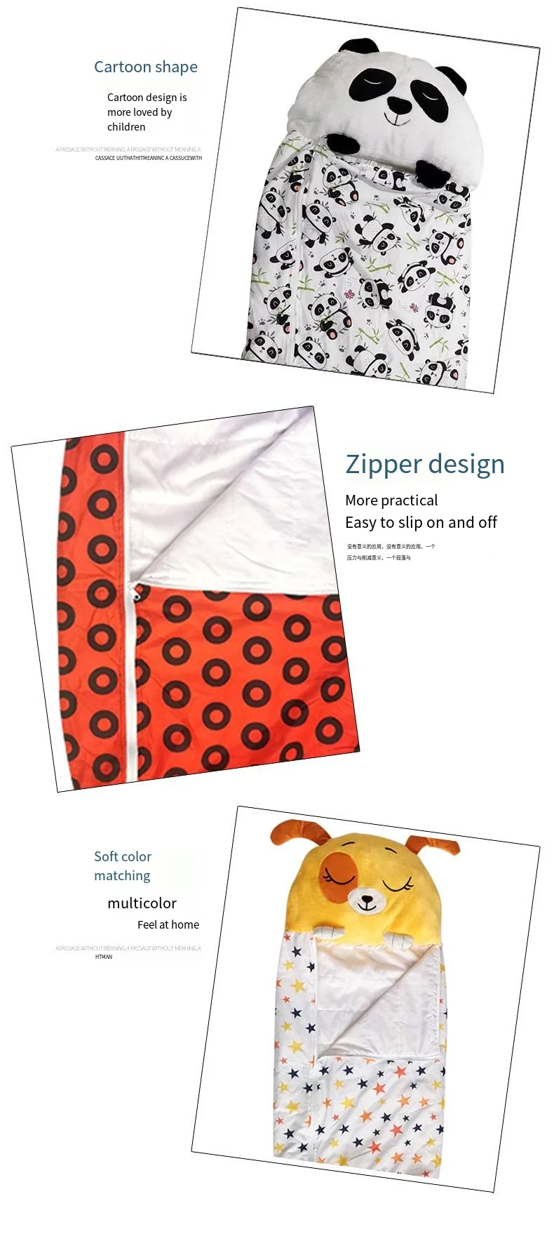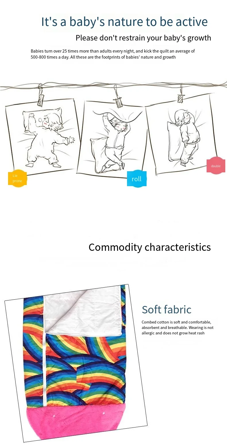 Colorful cartoon animal children's anti-kick home children's fun pillow pure cotton sleeping bag