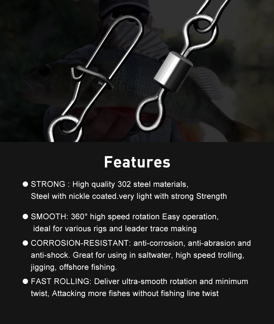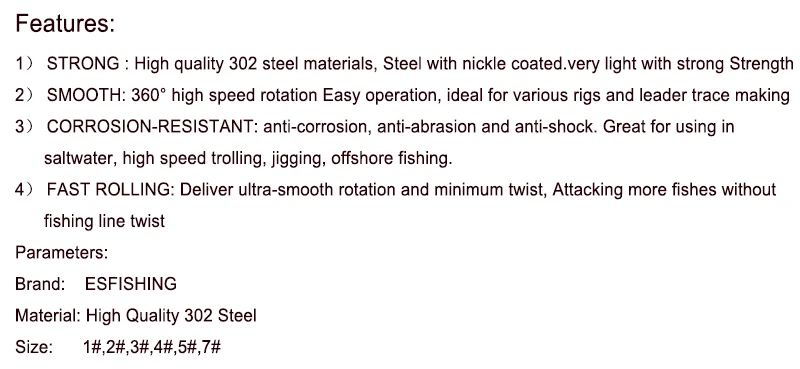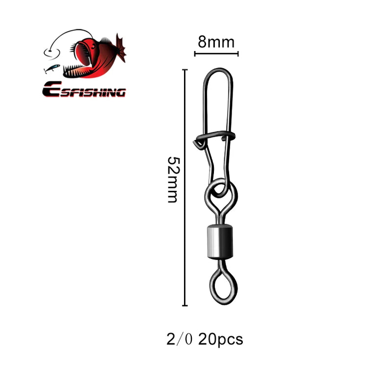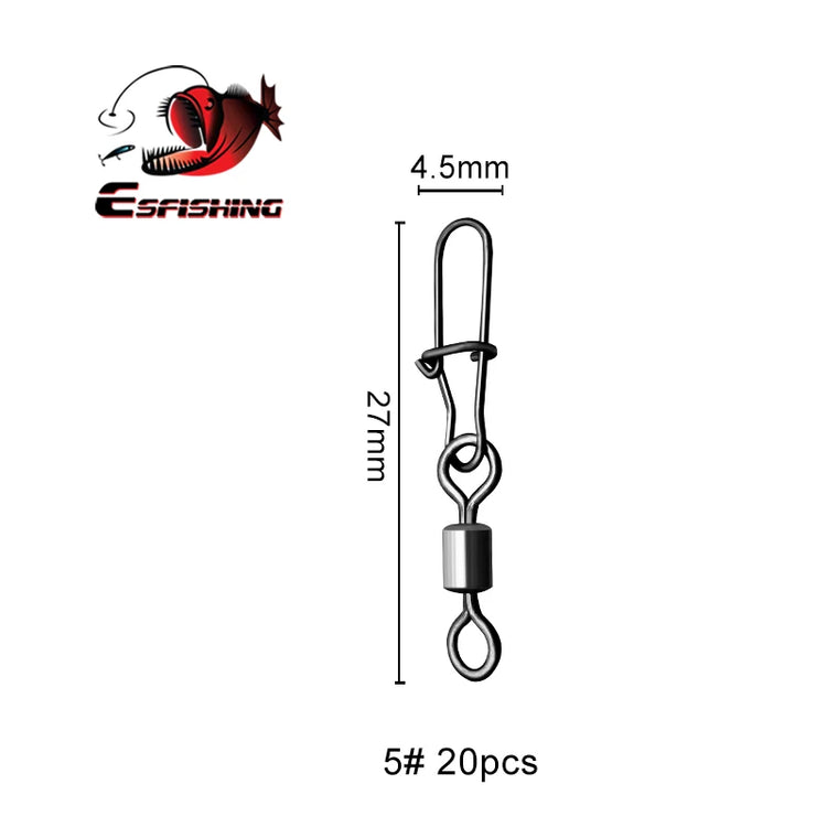 ESFISHING 20pcs Pike Fishhook Lure Fishing Accessories Connector Pin Bearing Rolling Swivel Stainless Steel Snap Swivels Tackle