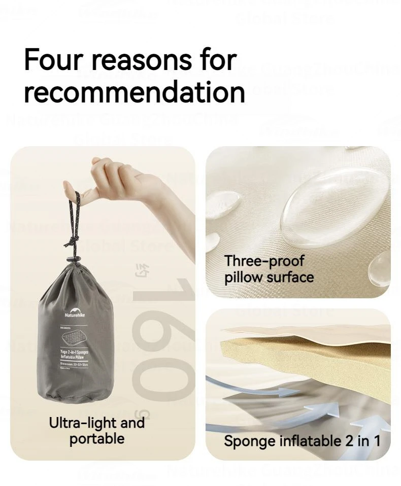 Naturehike Inflatable Pillow 3D Sponge Ultralight 160g for Camping Outdoor Travel Neck Sleeping Silent Self Air Pillow Portable