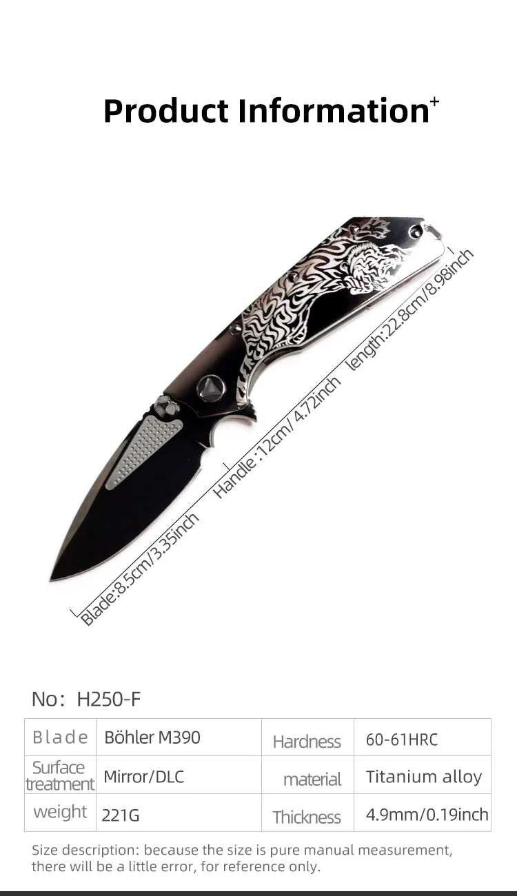 new folding knife Böhler M390 high quality steel outdoor camping pocket Titanium Mirror/DLC craft Collectibles Fruit knives