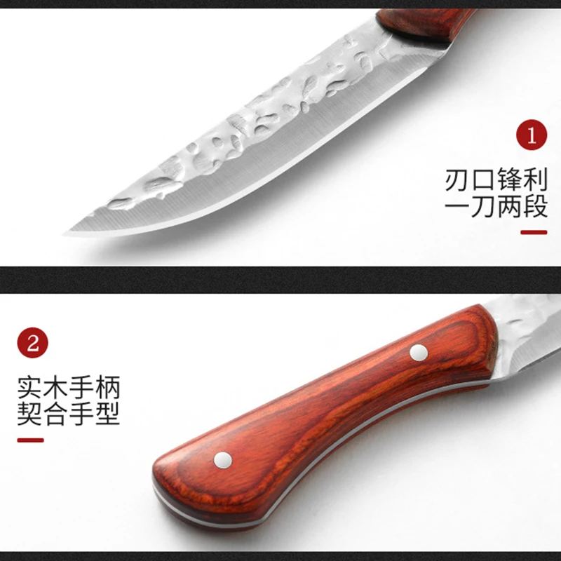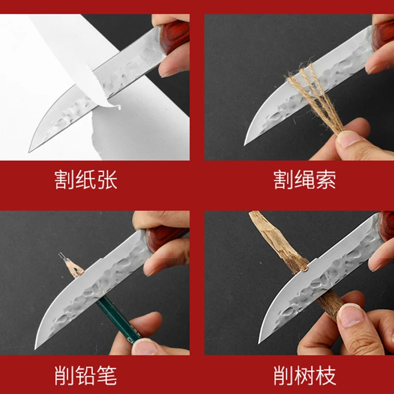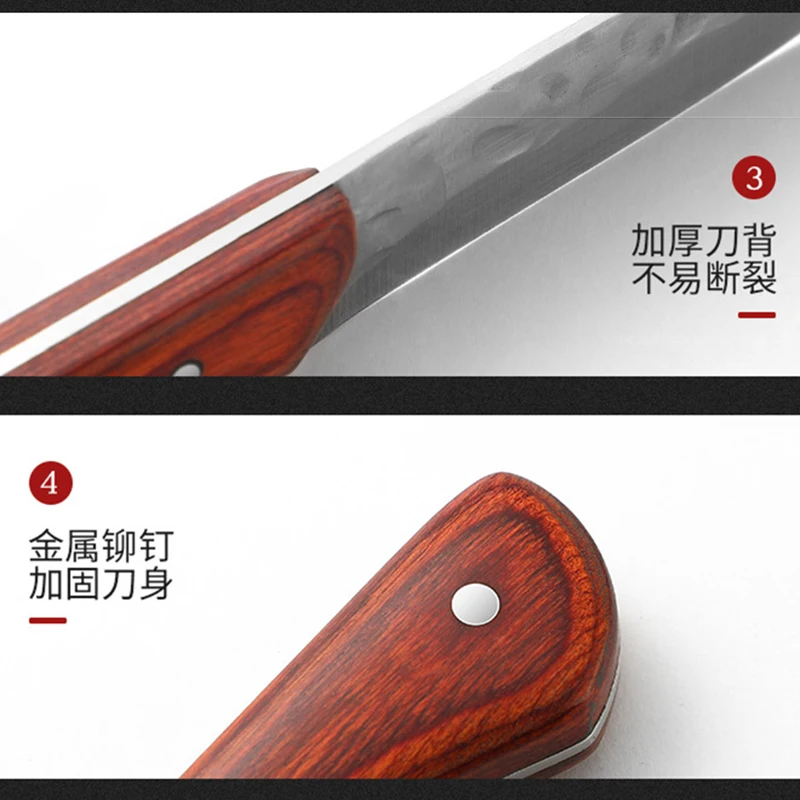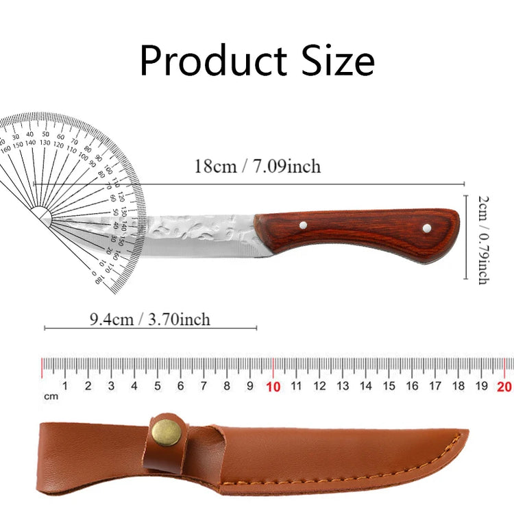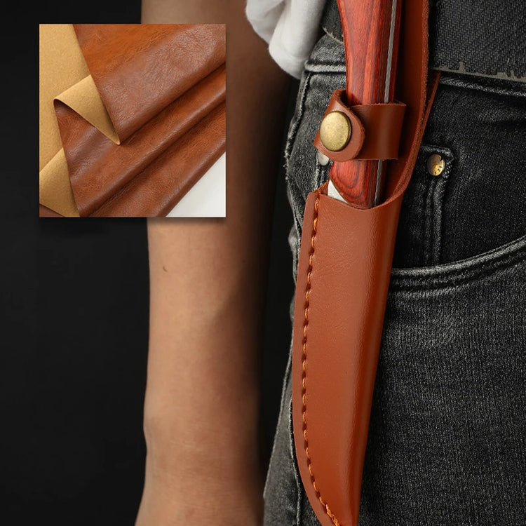 Outdoor Portable Wooden Handle Small Knife, Camping Meat Cleaver Knife, Household Sharp Fruit Knife, Straight Knives With Sheath