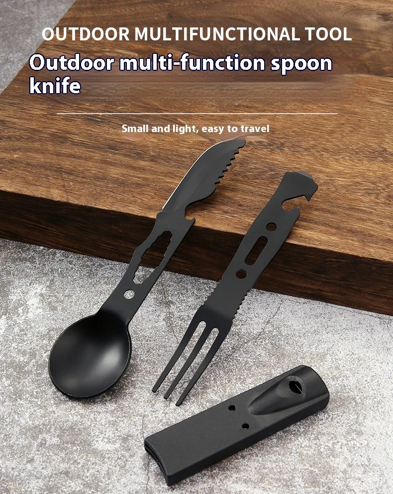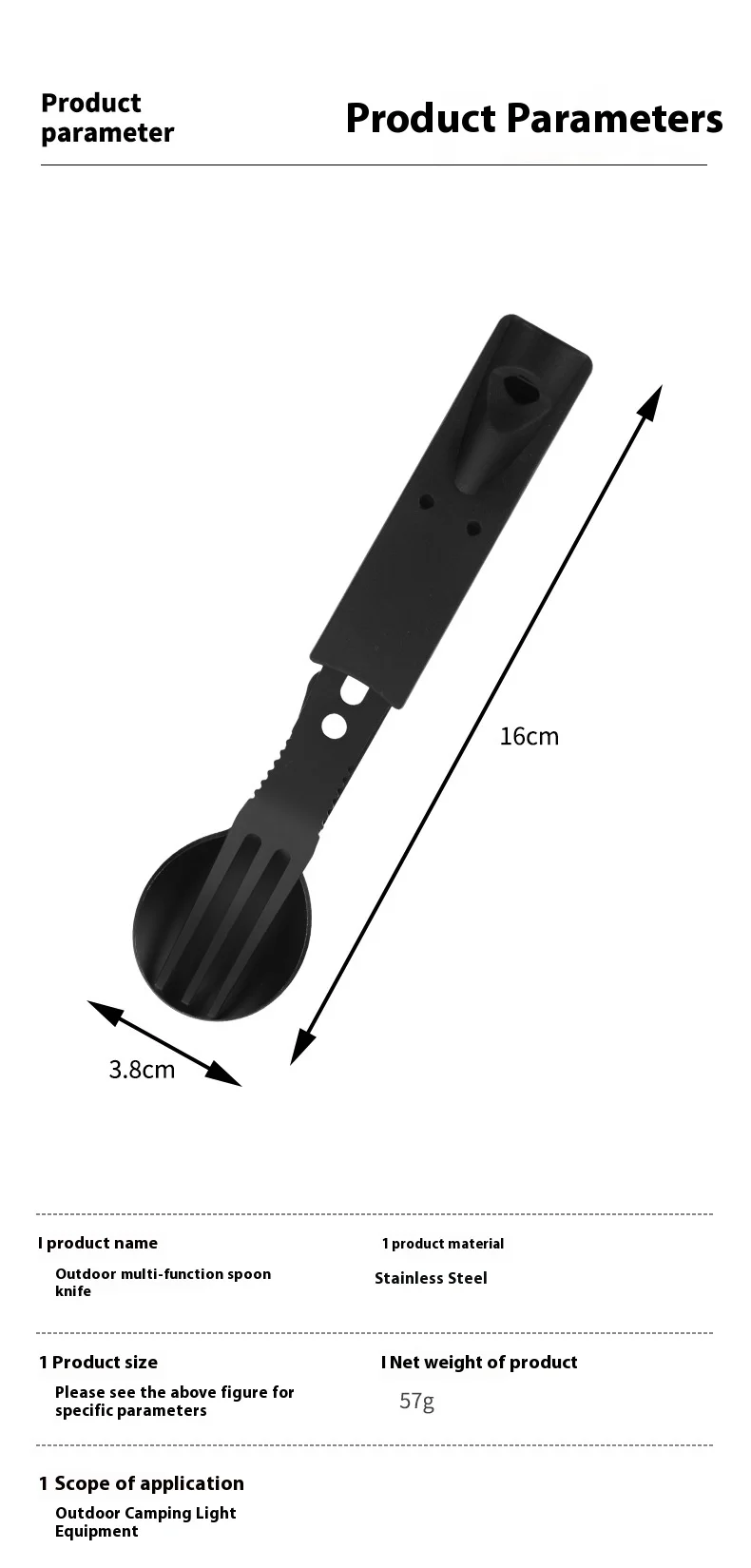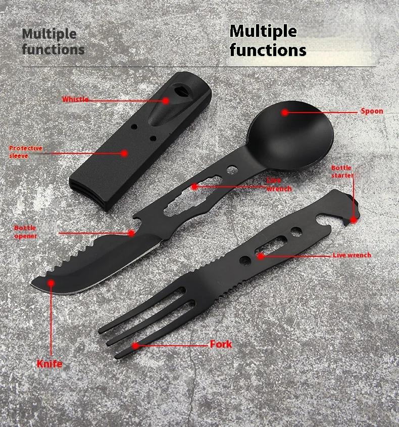 Outdoor Set Multifunctional Camping Knife Camping Cutlery Outdoor Combo Stainless Steel with Whistle Spoon Forks
