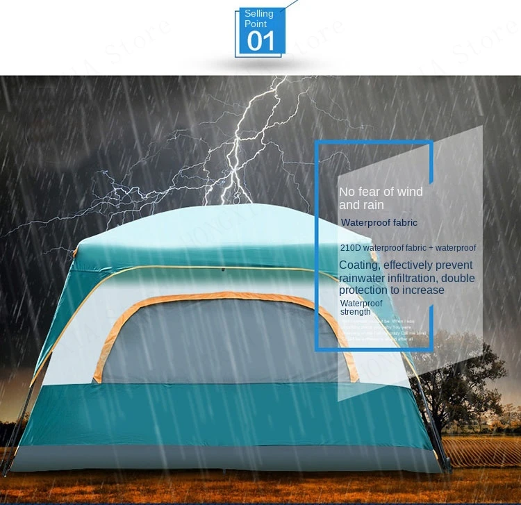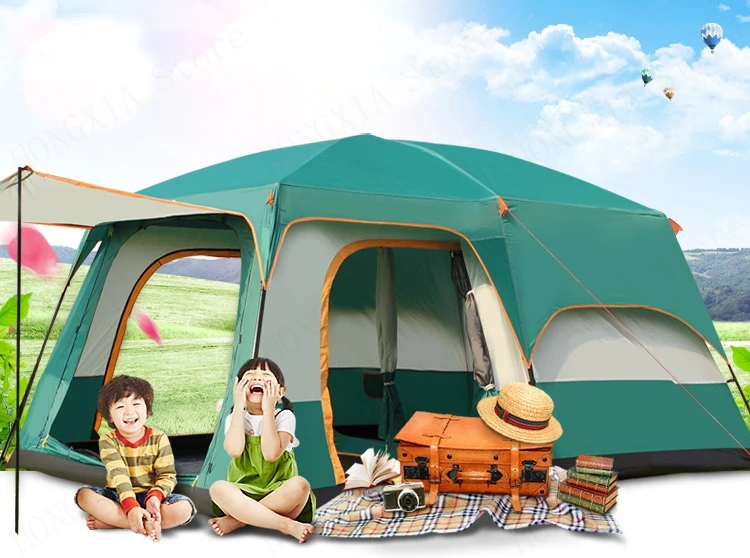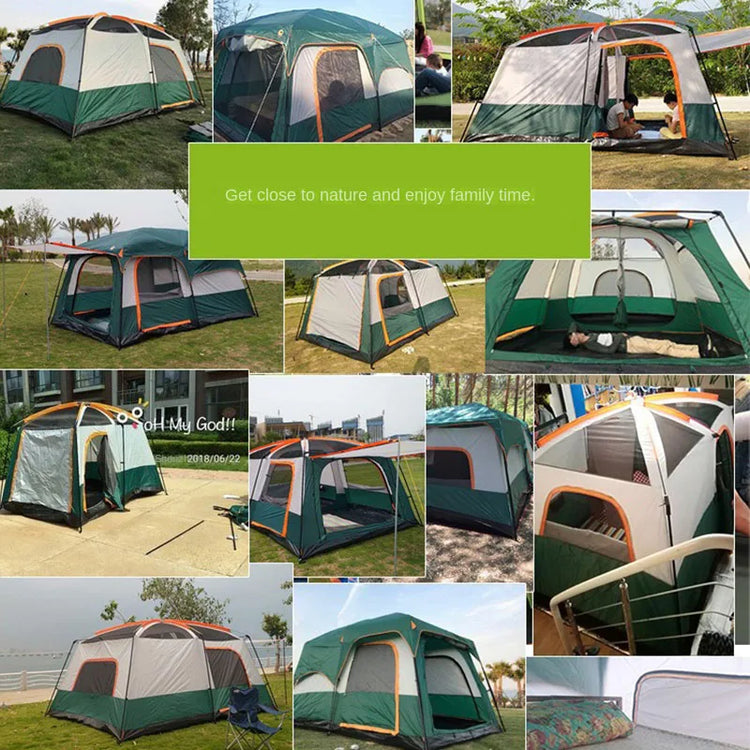 Portable Thickened Camping Tent for Family, Outdoor Large Tent, Rainproof and Waterproof, Camping Supplies, One Hall, 3-12P