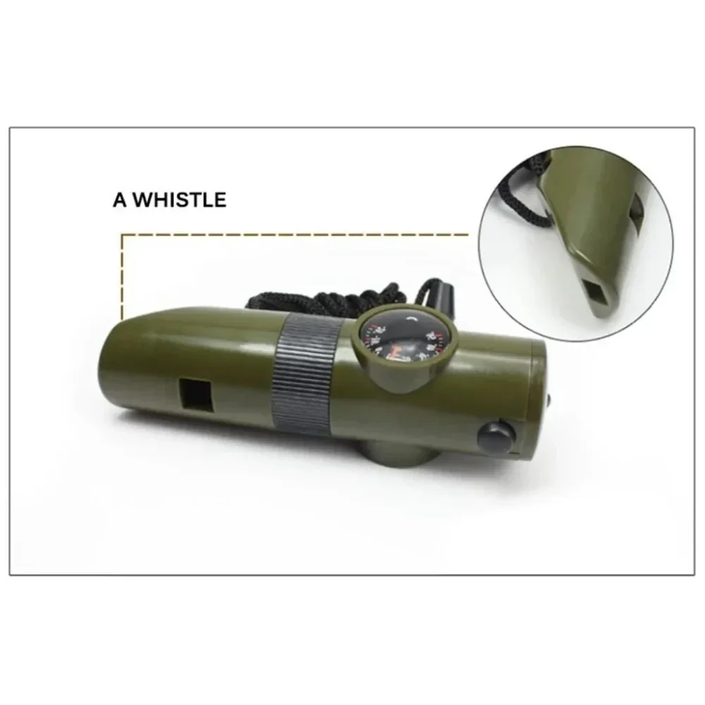 Survival Whistle with 6-in-1 Functions - LED Flashlight Compass Mirror Thermometer & Magnifier for Hiking Emergency