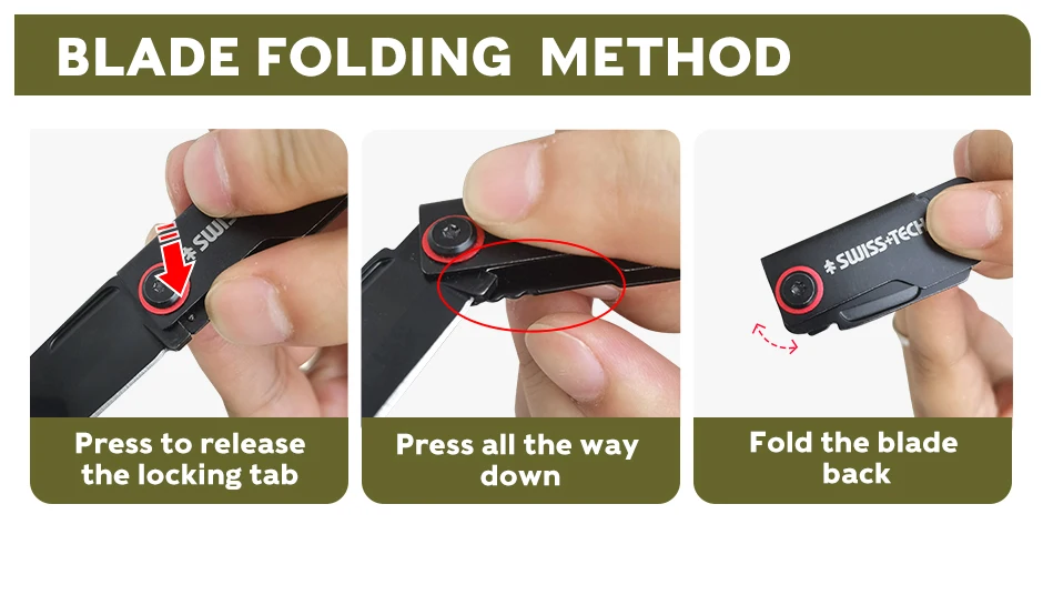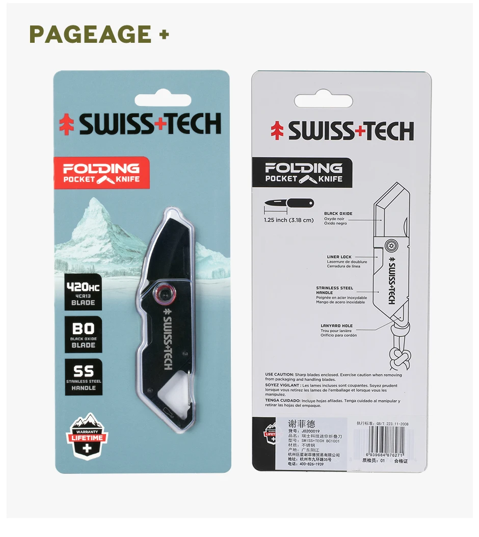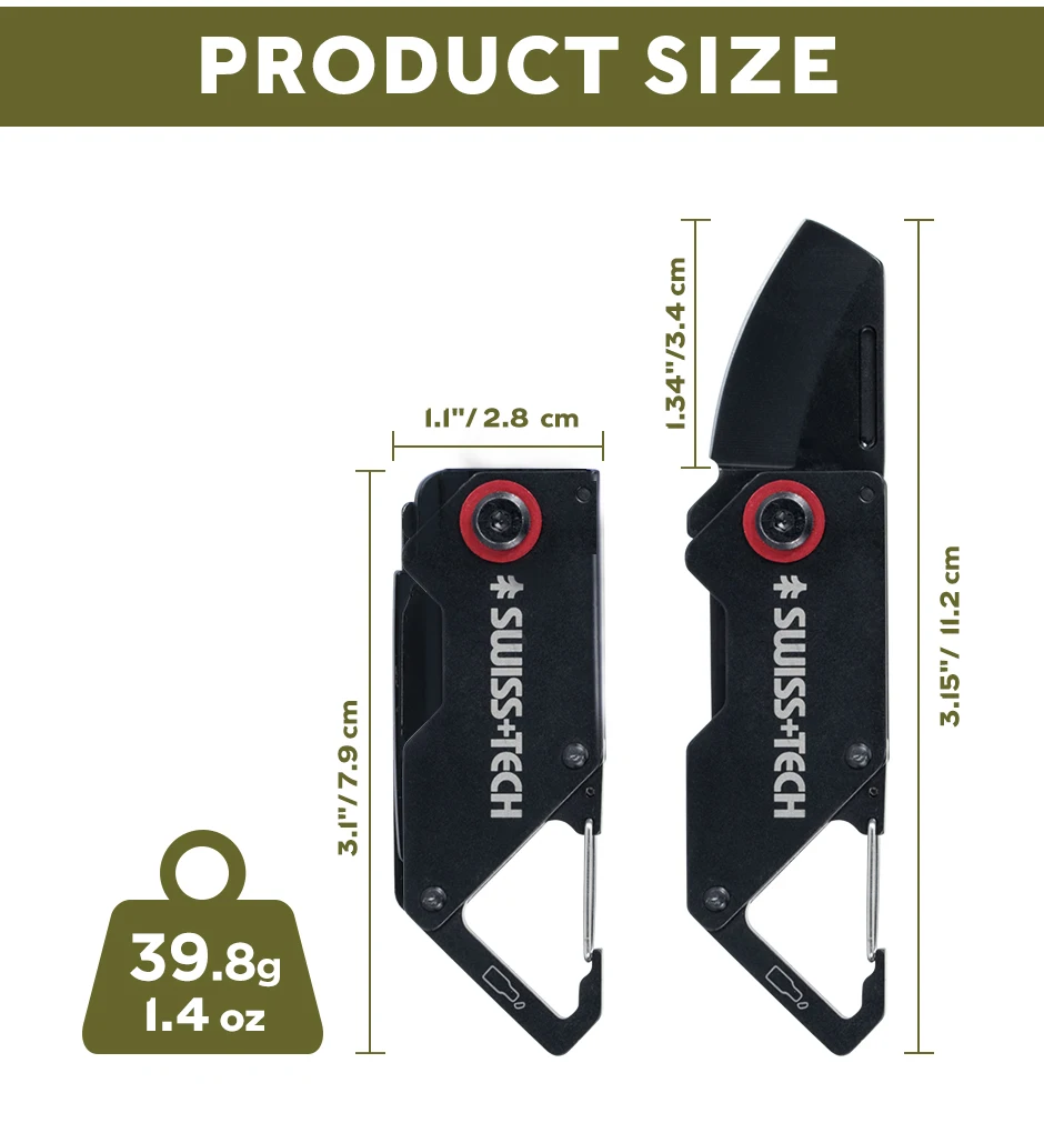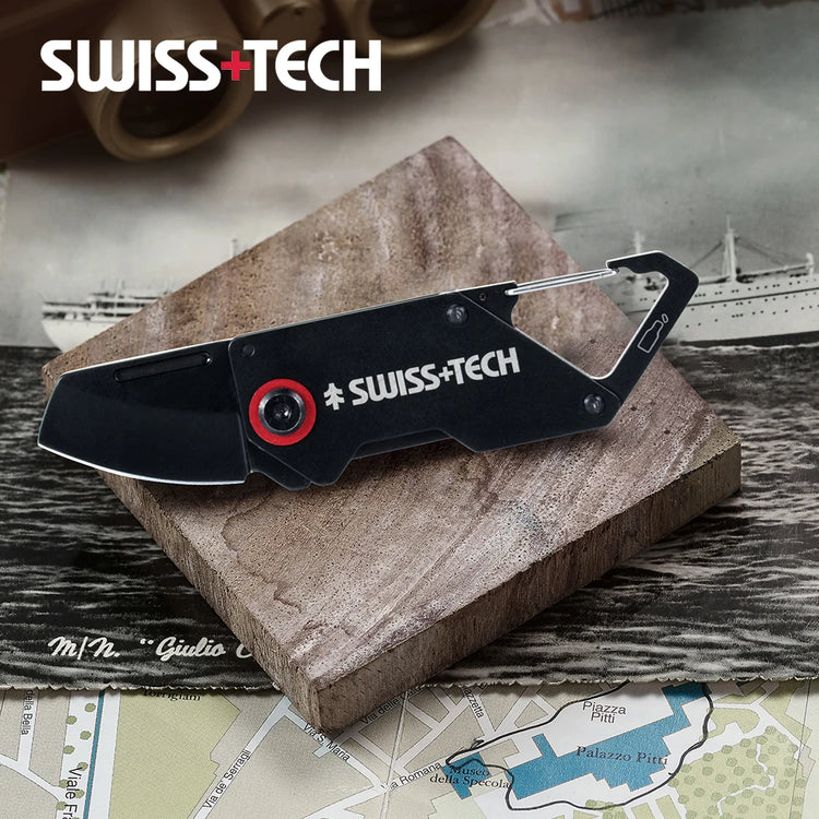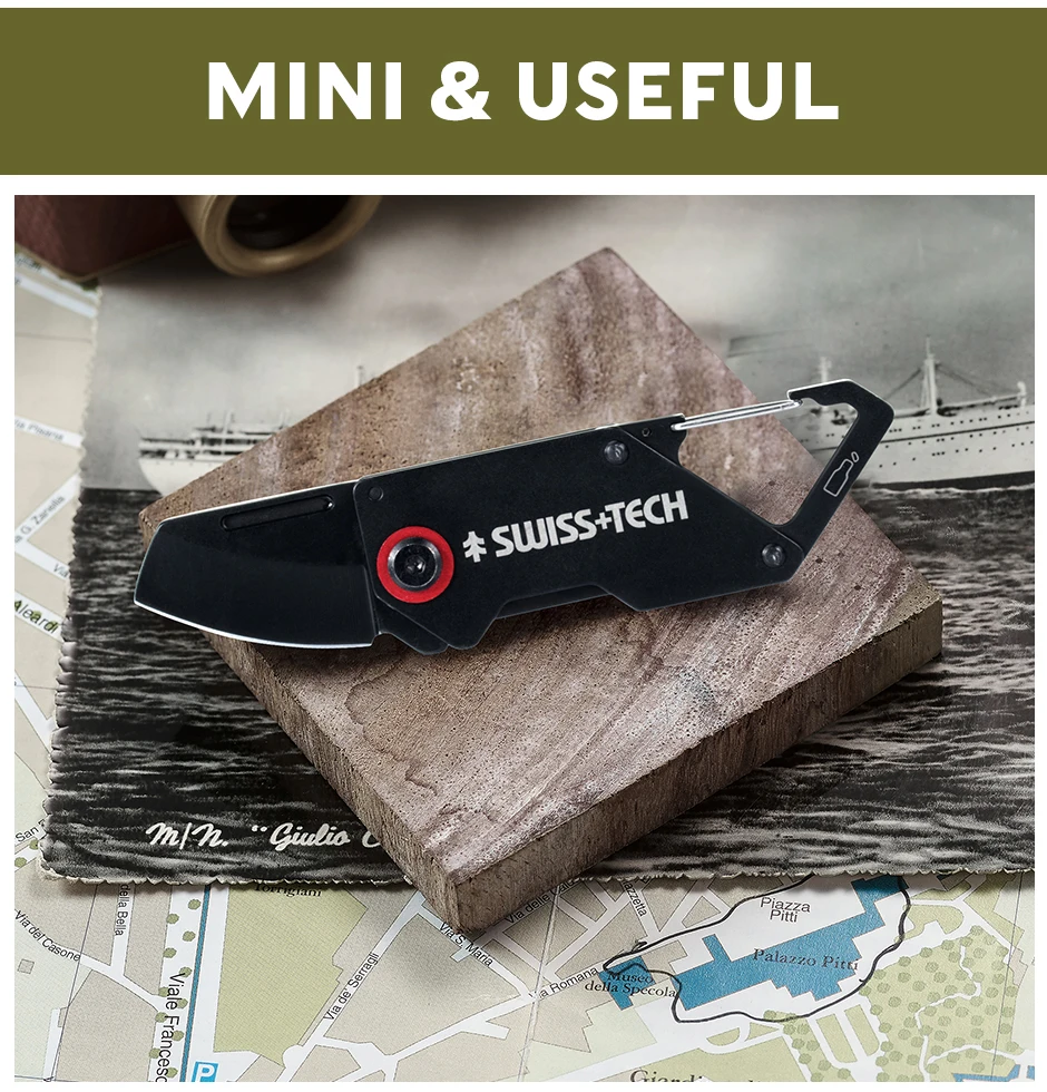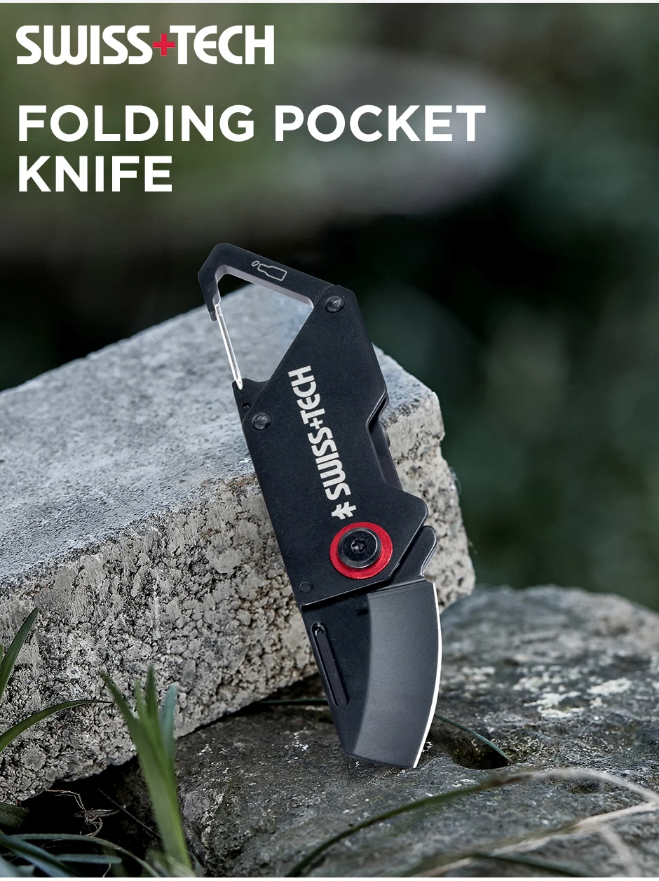 SWISS TECH Mini Folding Knife Multitool Pocket Knives With Carabiner Clip Camping EDC Portable Keyring Box Cutter Bottle Opener