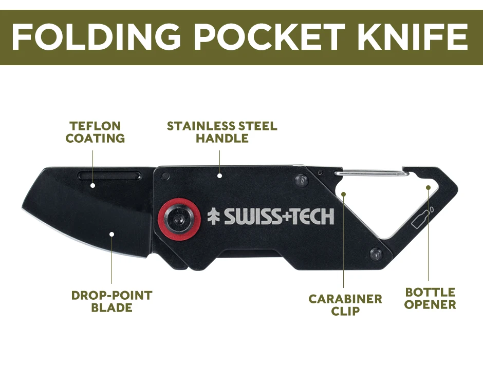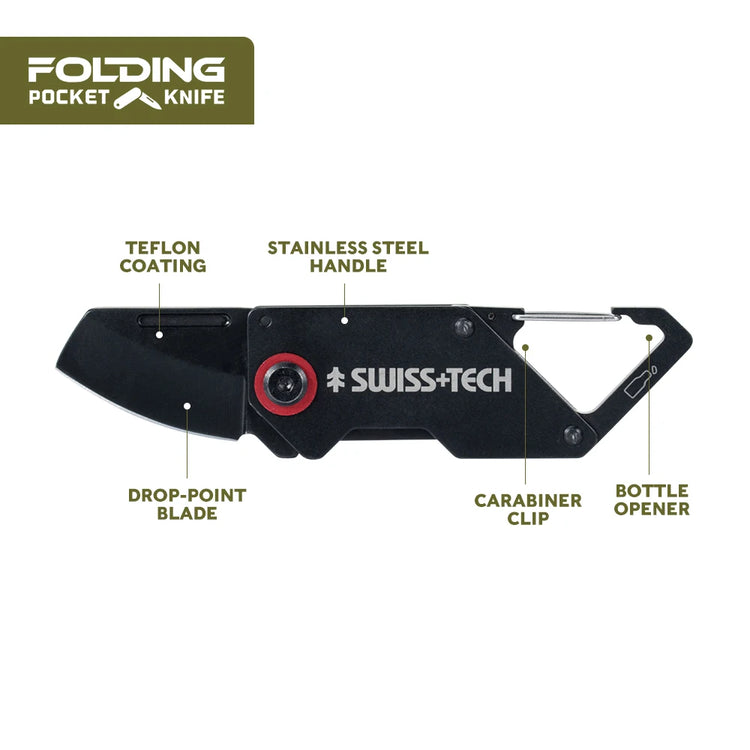 SWISS TECH Multi-Functional Mini Pocket Folding Knife With Bottle Opener & Carabiner Clip